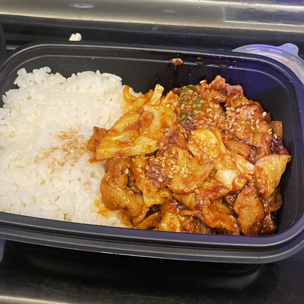 직화제육정식으로 포장해먹은건데 혼자 밥먹기 딱임