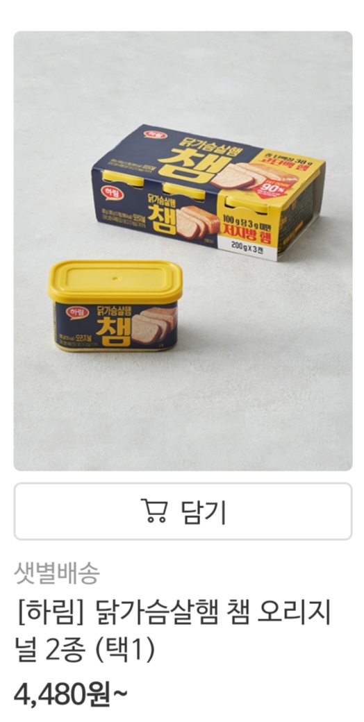 하림에서 나온 햄인데 스팸처럼 생긴 닭가슴살 햄이야