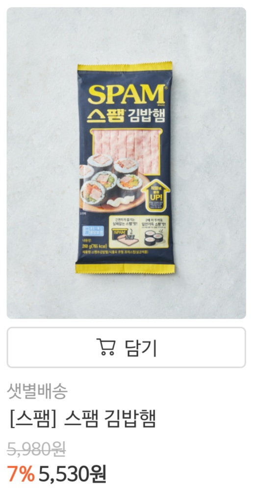 이건 유명해서 다들 알테지만 최근에 김밥 싸먹으려고 샀는데 개 간편하고 진짜 스팸맛나서 편했음...스팸을 내가 별로 안좋아하지만 김밥은 나름 괜찮더라고? 스팸 김밥 좋아하면 사도 될듯