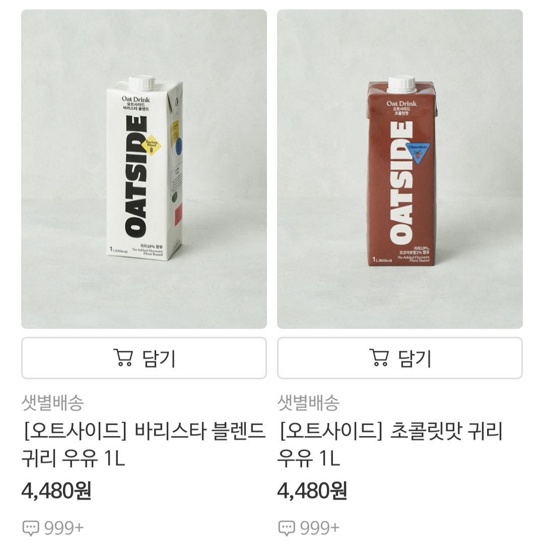 존맛탱 귀리우유 갑. 나는 둘 다 사먹어봤는데