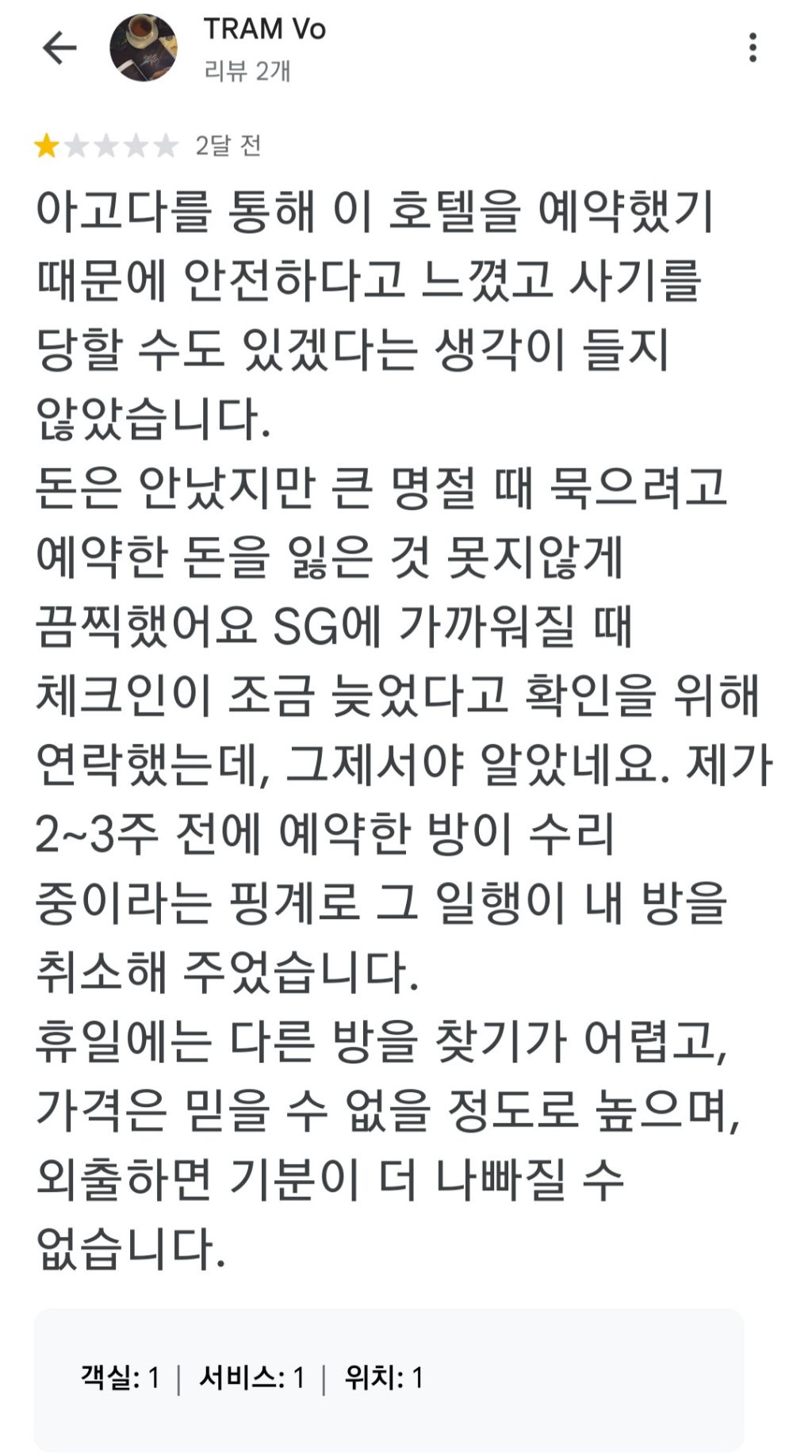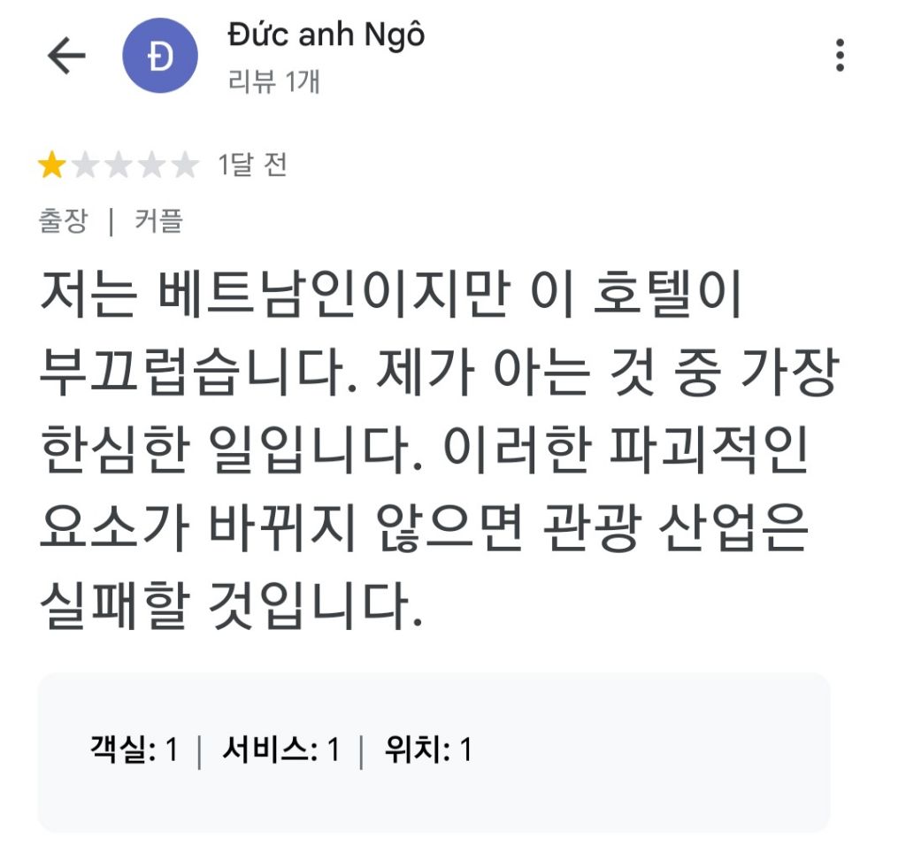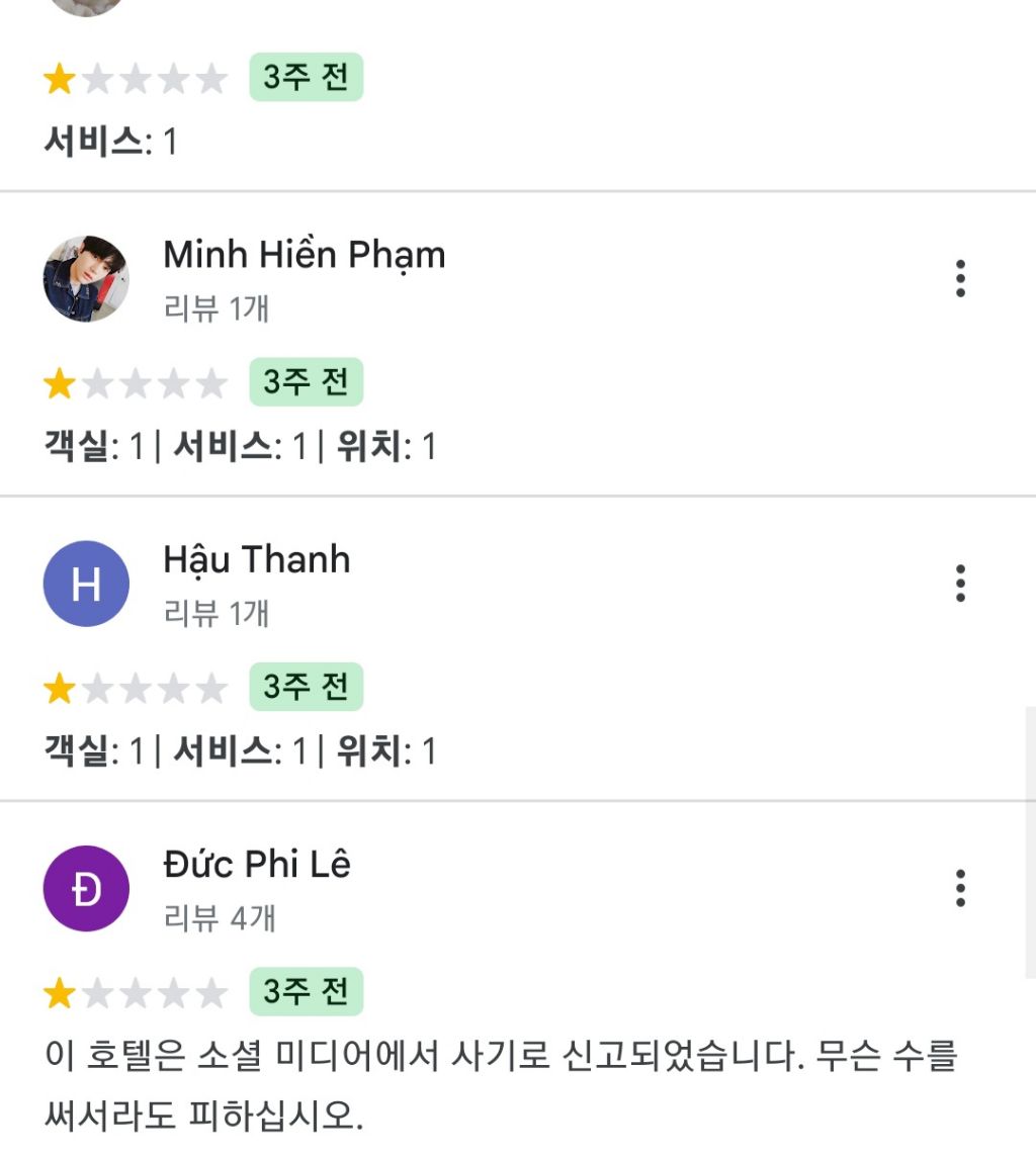 구글지도 후기도 꼭 찾아보고 웬만하면 베트남 숙박은 4성급 이상에서 하는 게 좋을 것 같아.