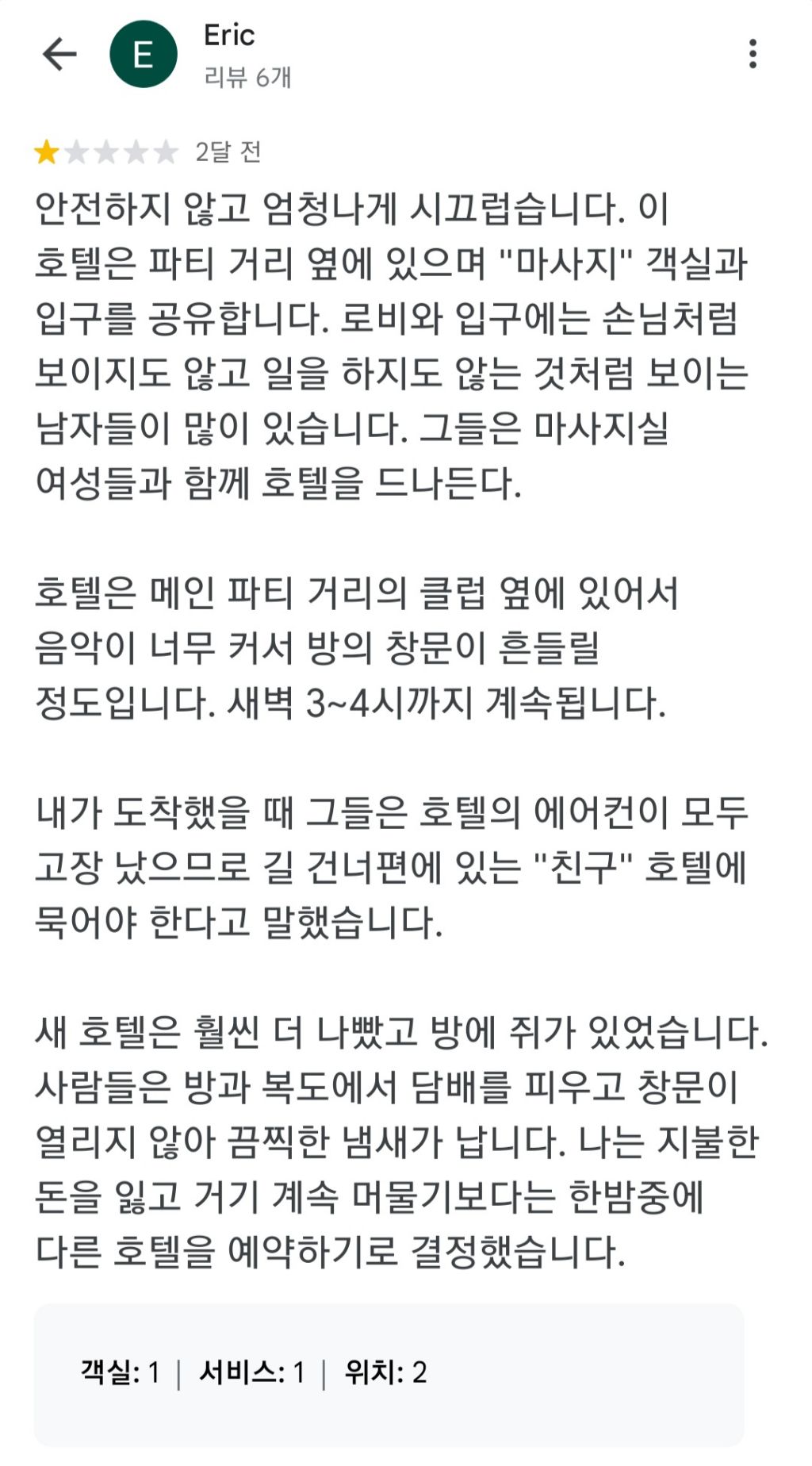 옆방은 싸우고 샤워실 냄새나고 ..