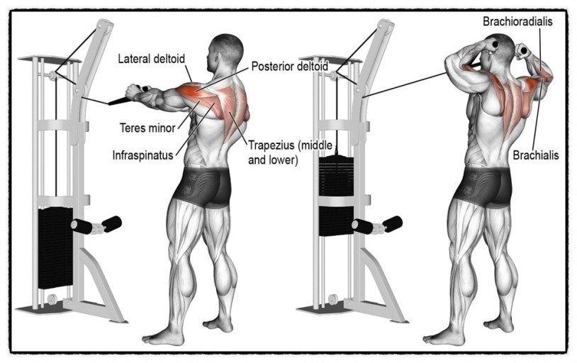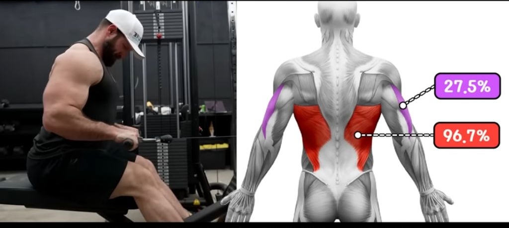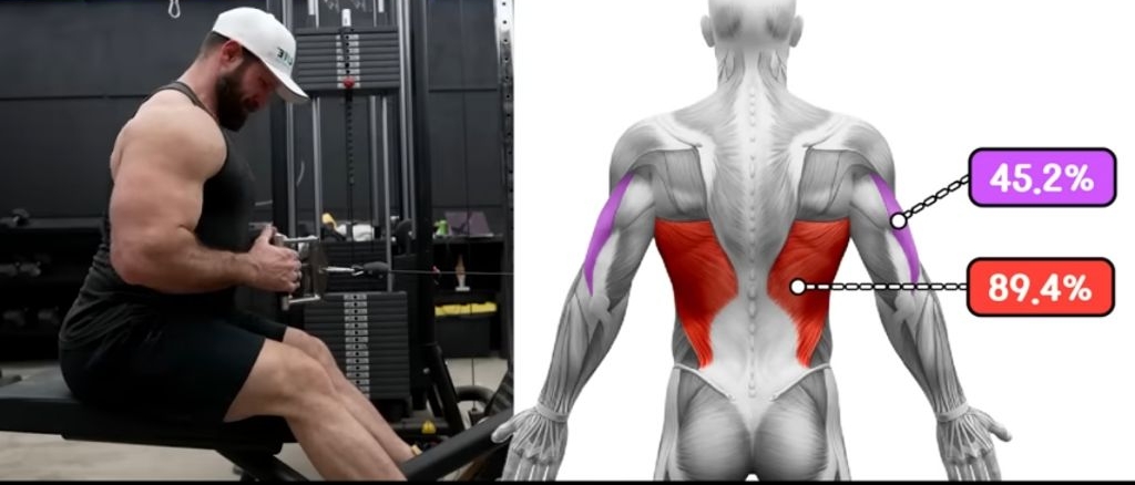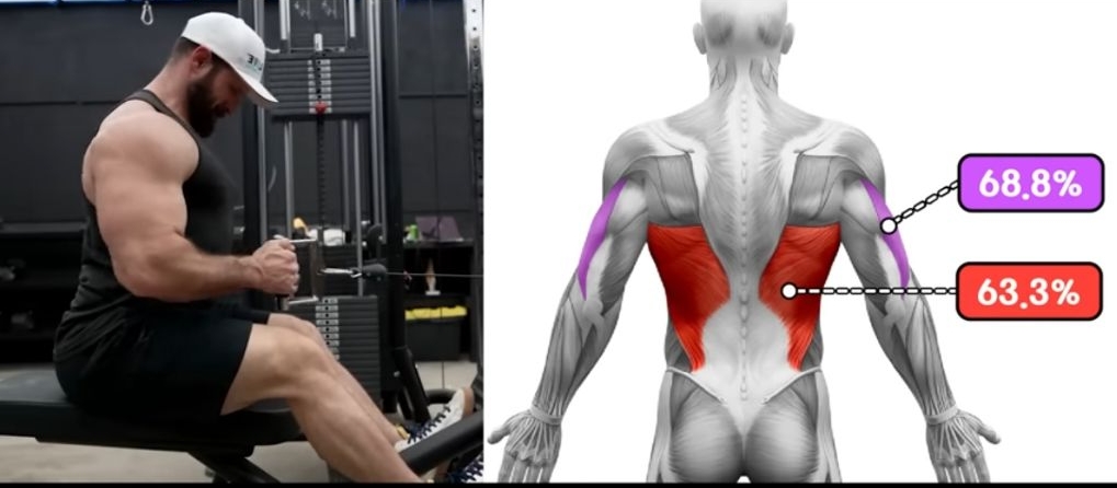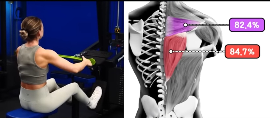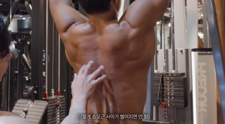팔꿈치를 벌린 상태로 진행할 경우 중부와 하부 승모근을 80퍼센트대로 활성화 시킬 수 있어
