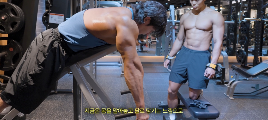 얘 보통 벤치에 무릎을 대고 많이 하는데 무릎 내리고 팔만 대고 하는게 더 효과 높음