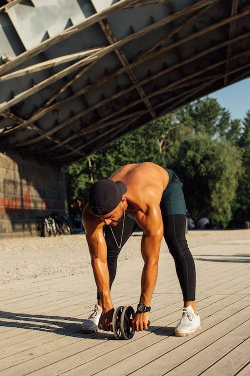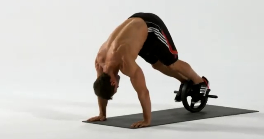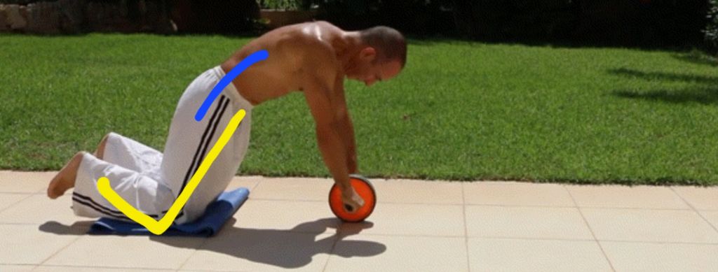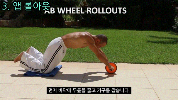 자세가 준비 되었으면 배의 힘으로 롤러를 앞으로 밀었다가
