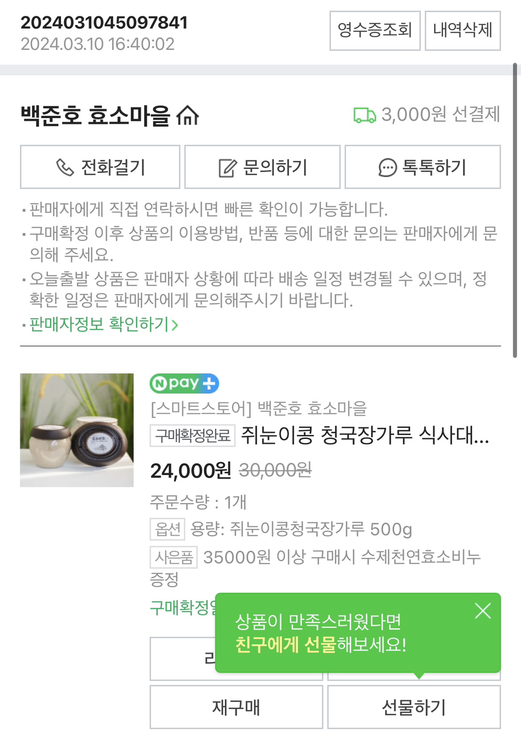 1.특유 청국장 꼬랑내가 안나진 않아서 비위 약하거나 입짧은 여시들에게는 비추…!