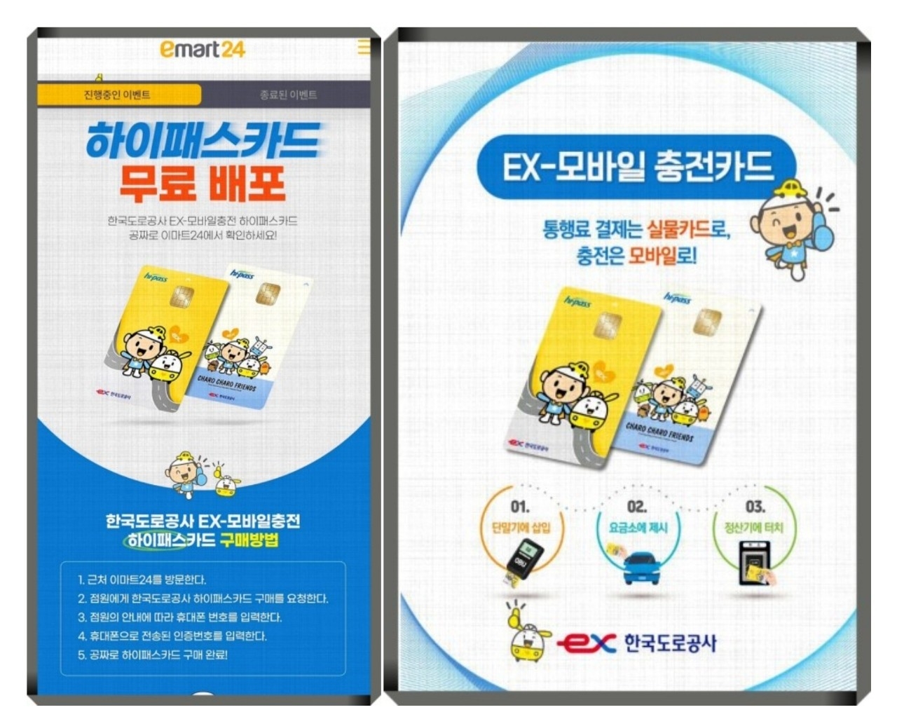 이마트24🫶한국도로공사가 손잡고 하이패스 무료카드를 배포한대