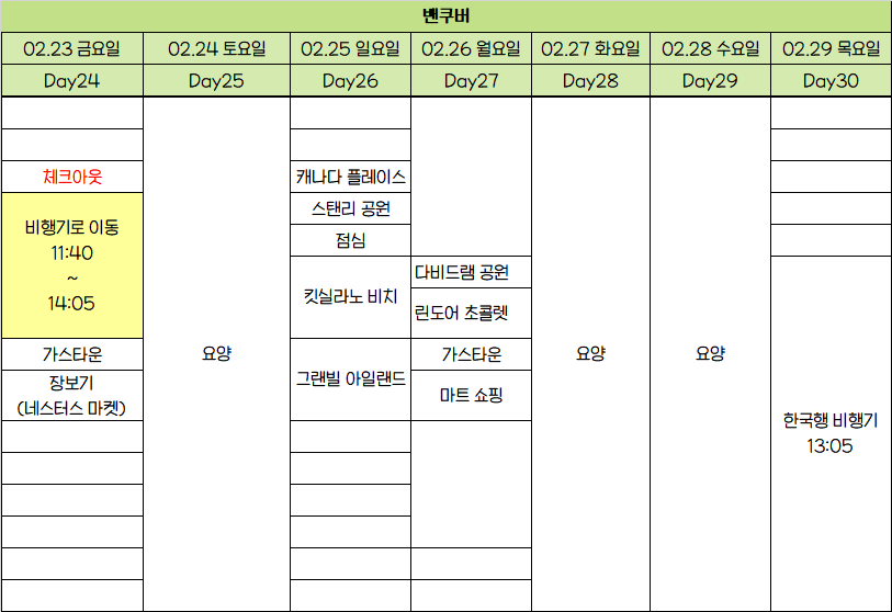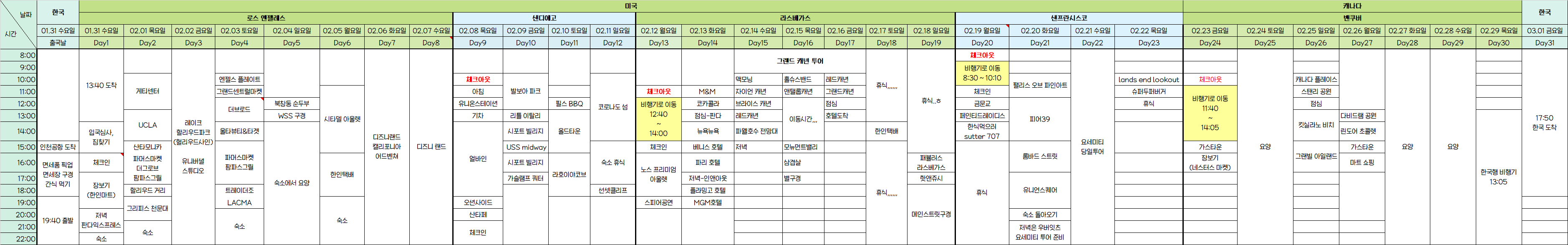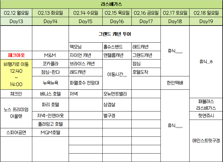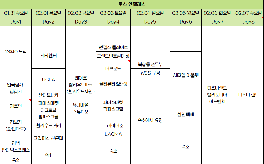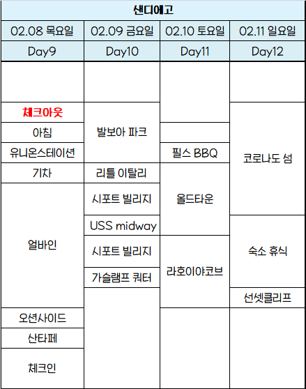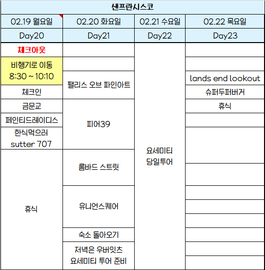 이거는 일정! 시간은 크게 상관이 없어... 혹시 미국 여행 준비중인 여시들한테 도움이 되어ㅛ으면 좋겠다!!