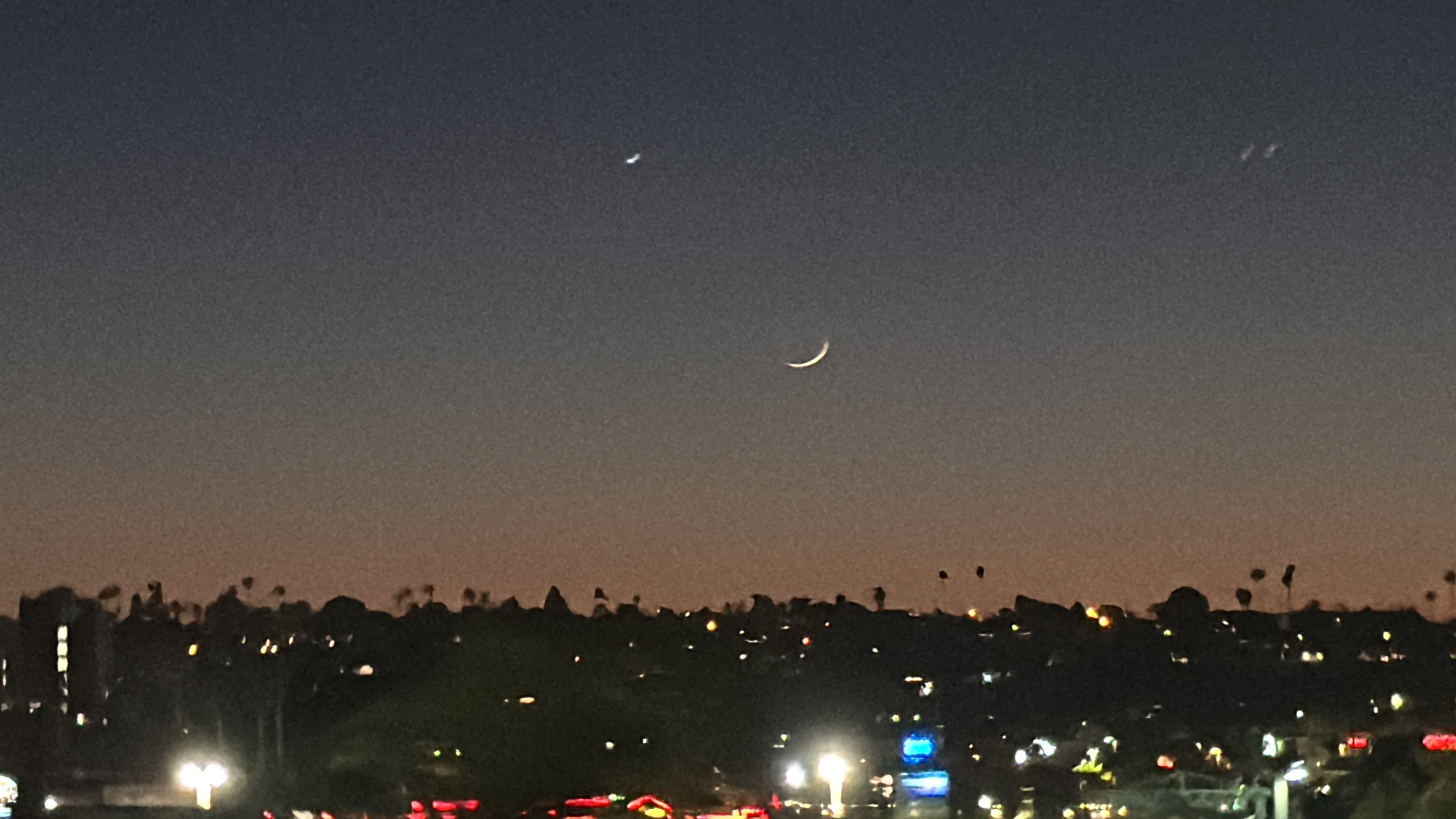 해가지니까 달이 떳어.. 정말 얇은 초승달! 어두워질수록 잘보여 ㅎㅎㅎ