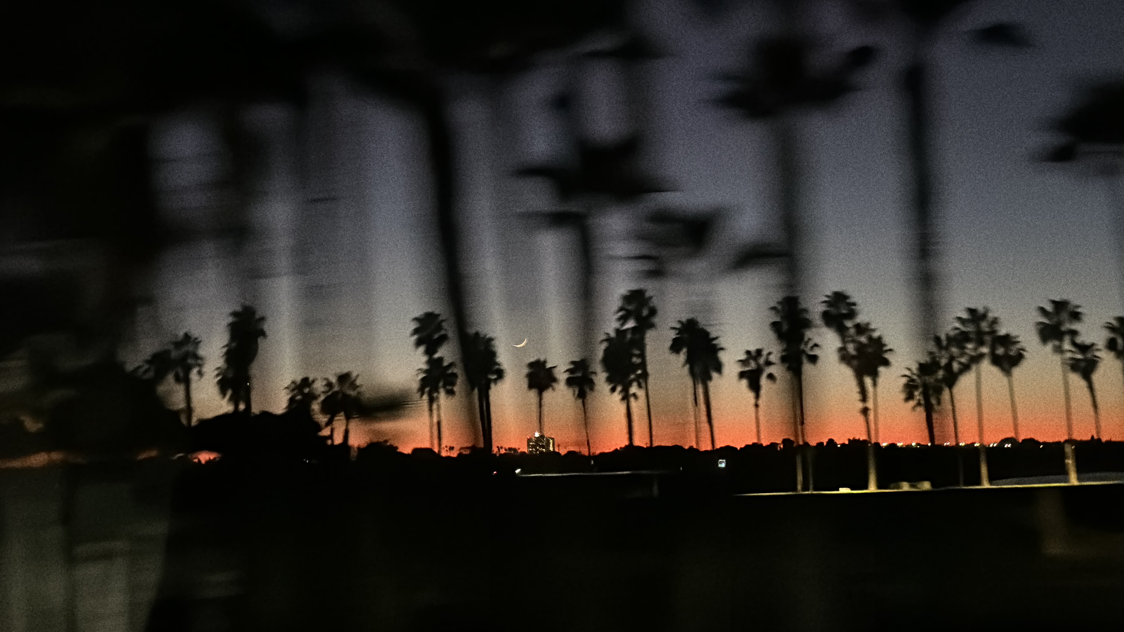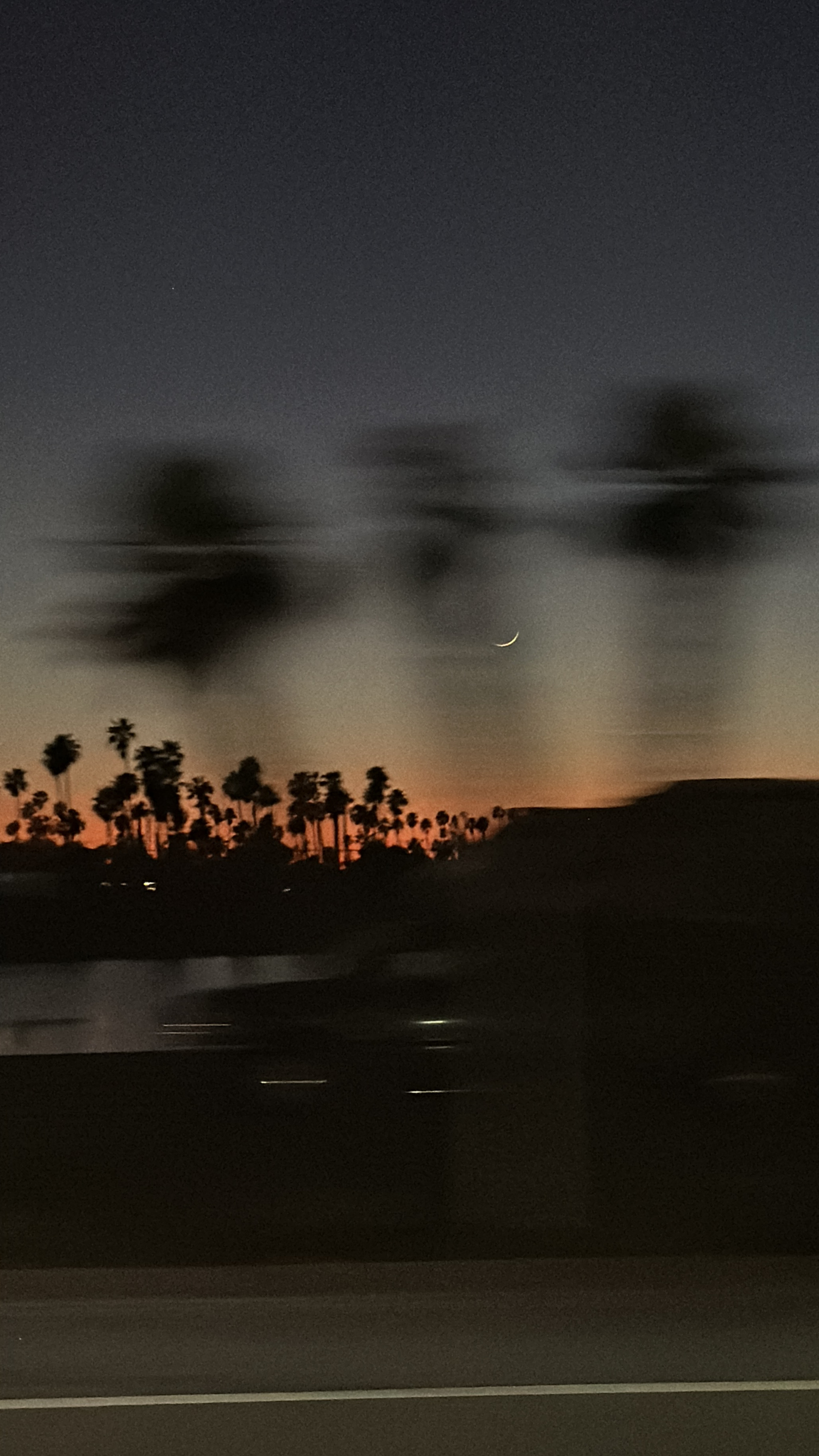 가는길에 달과 야자수와 노을이 너무 예뻐서 차에서 열쉬미 찍어봣어
