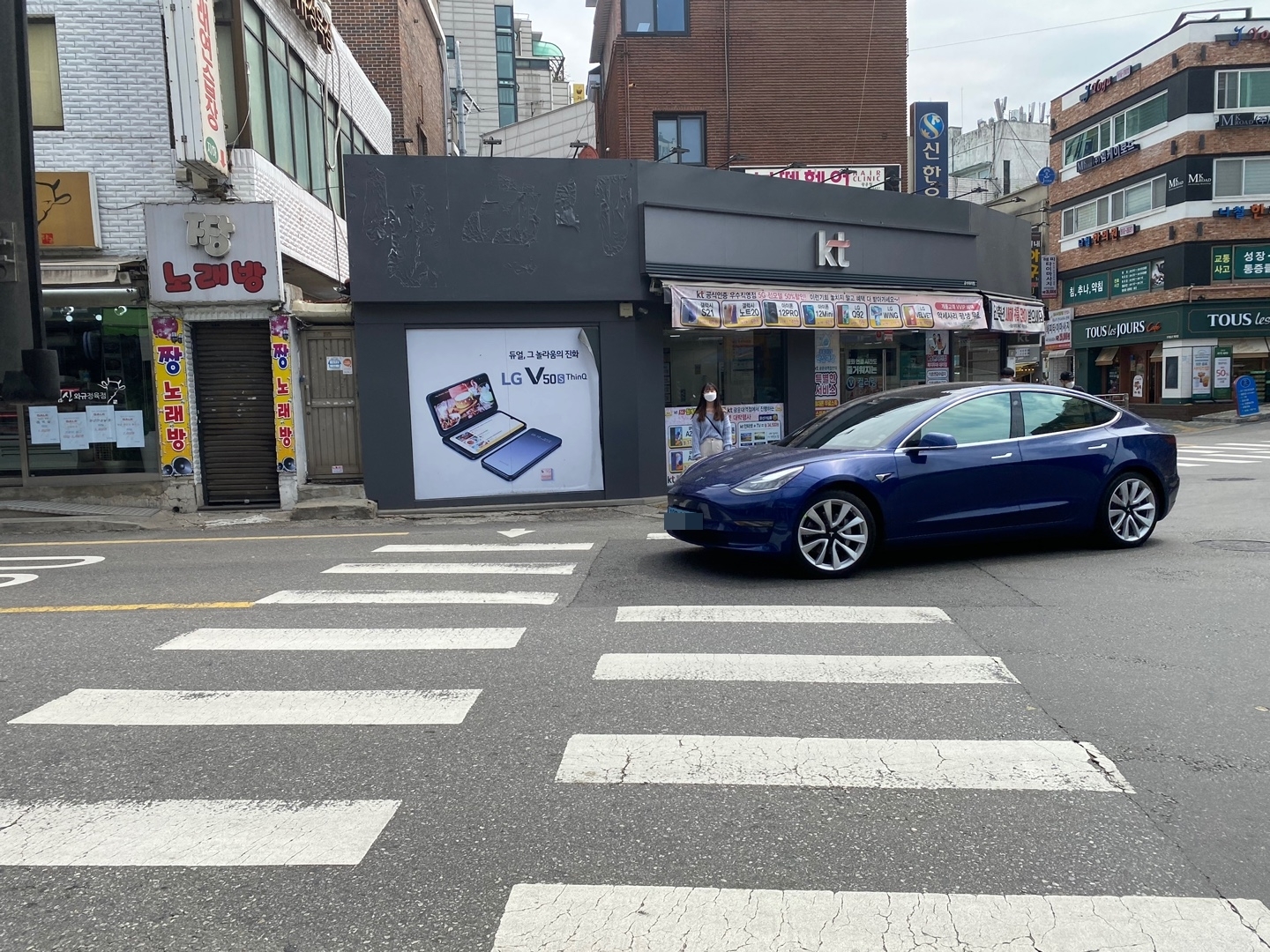 무신호 횡단보도에선 보행자가 우선이라 멈춰야함