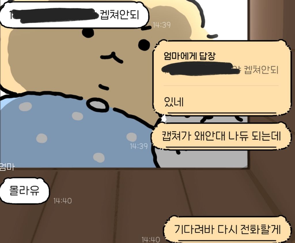 나도 그렇게 원격연결 하고나니 엄마가 캡쳐하는 방법을 모른다는 사실을 알게 된 것.