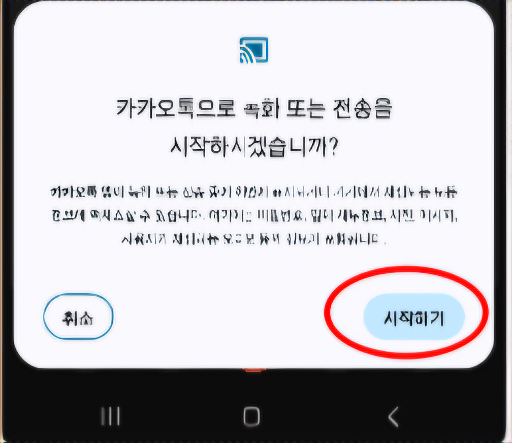 이 팝업으로 시작하기까지 누르면!!! 엄마 폰에는 내화면공유 진행중 이라는 문구가 적혀있을텐데