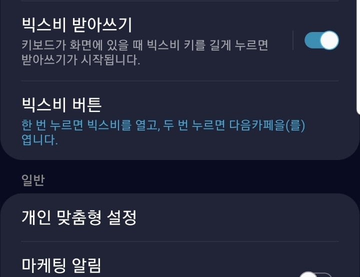 빅스비버튼 한번 누르고 설정 들어갑니다