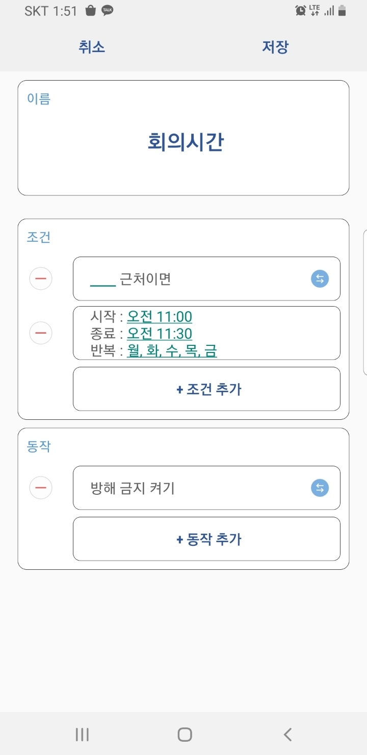- 회사반경내에서 점심시간대에는 방해금지모드지정