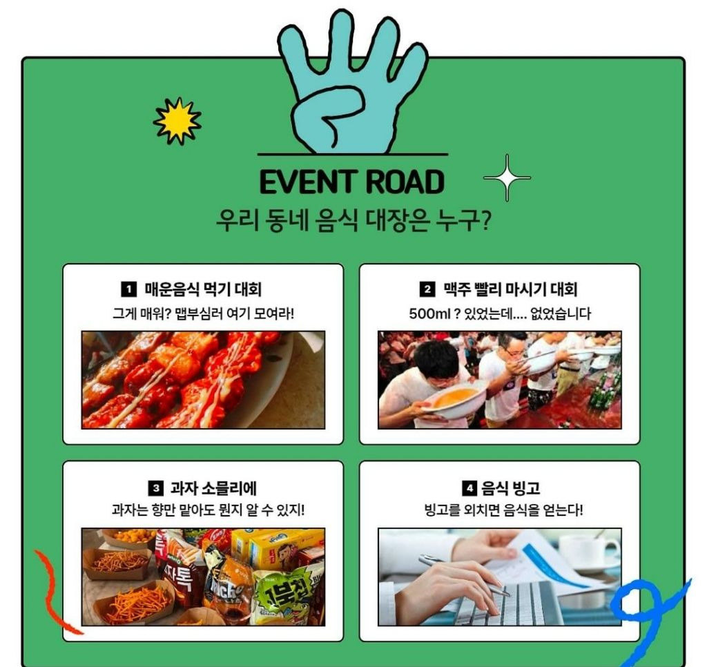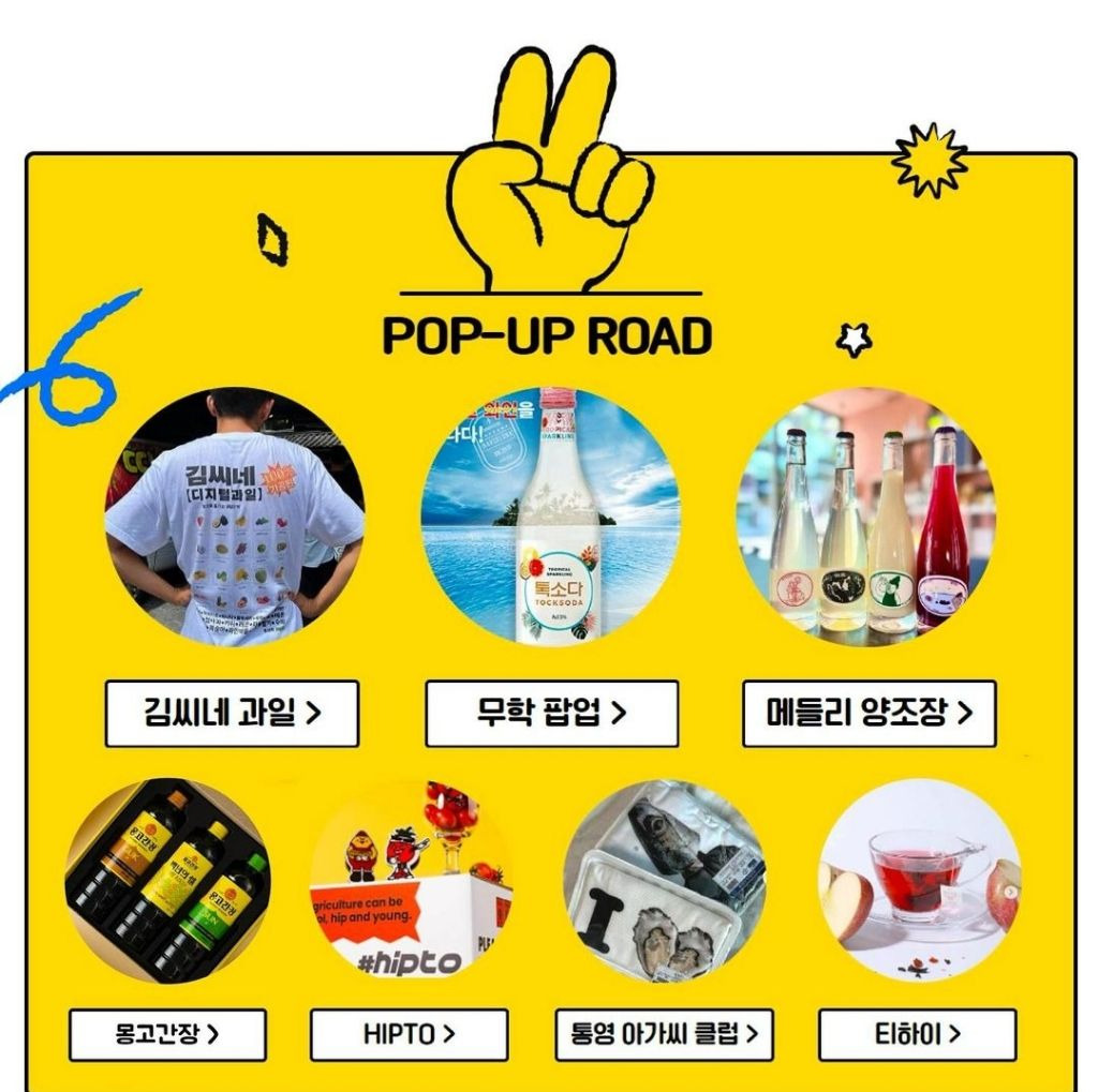 ('팝업 로드'에서는 △김씨네과일 △메들리 양조장 △티하이 △힙토 △무학 등 다양한 브랜드의 팝업 스토어가 운영된다. 음악공방, 올옷, DJ 주운 등 지역 아티스트들이 참여하는 '뮤직 로드'에서는 다양한 공연이, '마켓 로드'에서는 플리마켓이 진행된다. '이벤트 로드'에서는 매운 음식 먹기 대회, 맥주 빨리 마시기 대회, 과자 소물리에 행사 등이 열린다.)