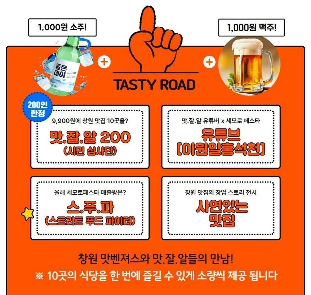 창원 대표 맛집 10곳 음식 맛보고 순위 정하는 그런거 하는데 시식할 수 있는 티켓이 9900원인듯