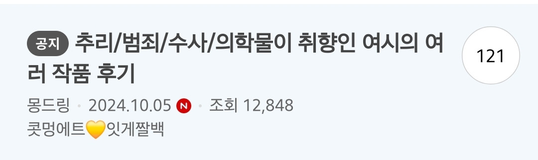 추리/범죄/수사/의학물 너무 재밌고 재밌고 재밌어...