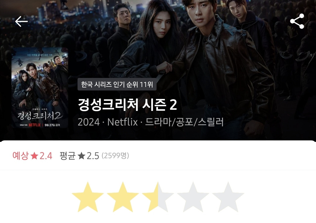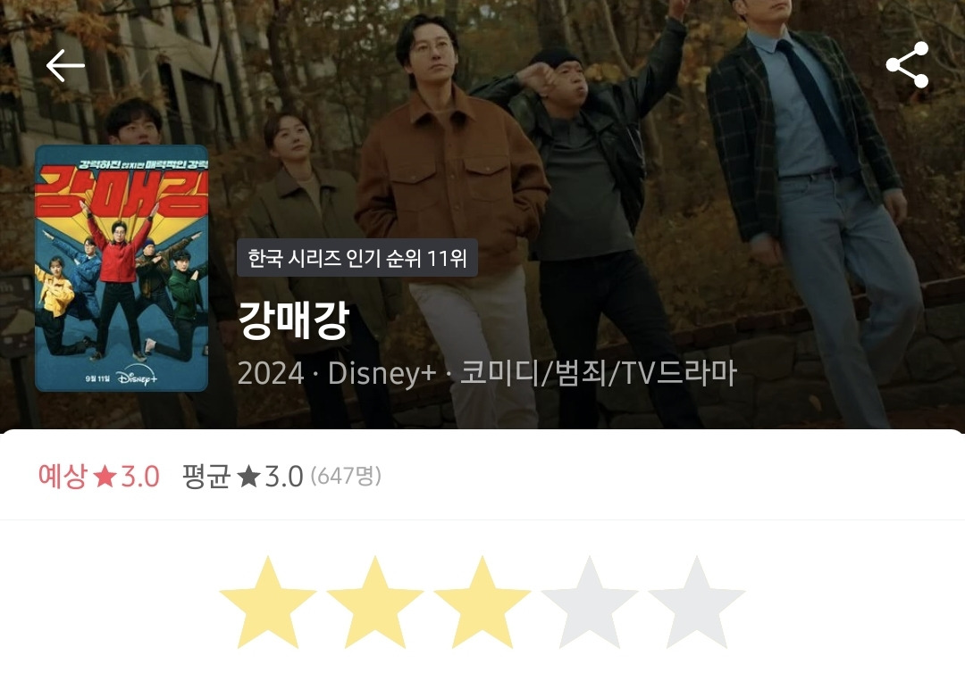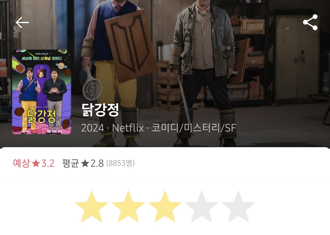 근데 뭐랄까 좀.. 저예산 느낌이 많이 나고 개그코드가 나랑 살짝 안 맞고