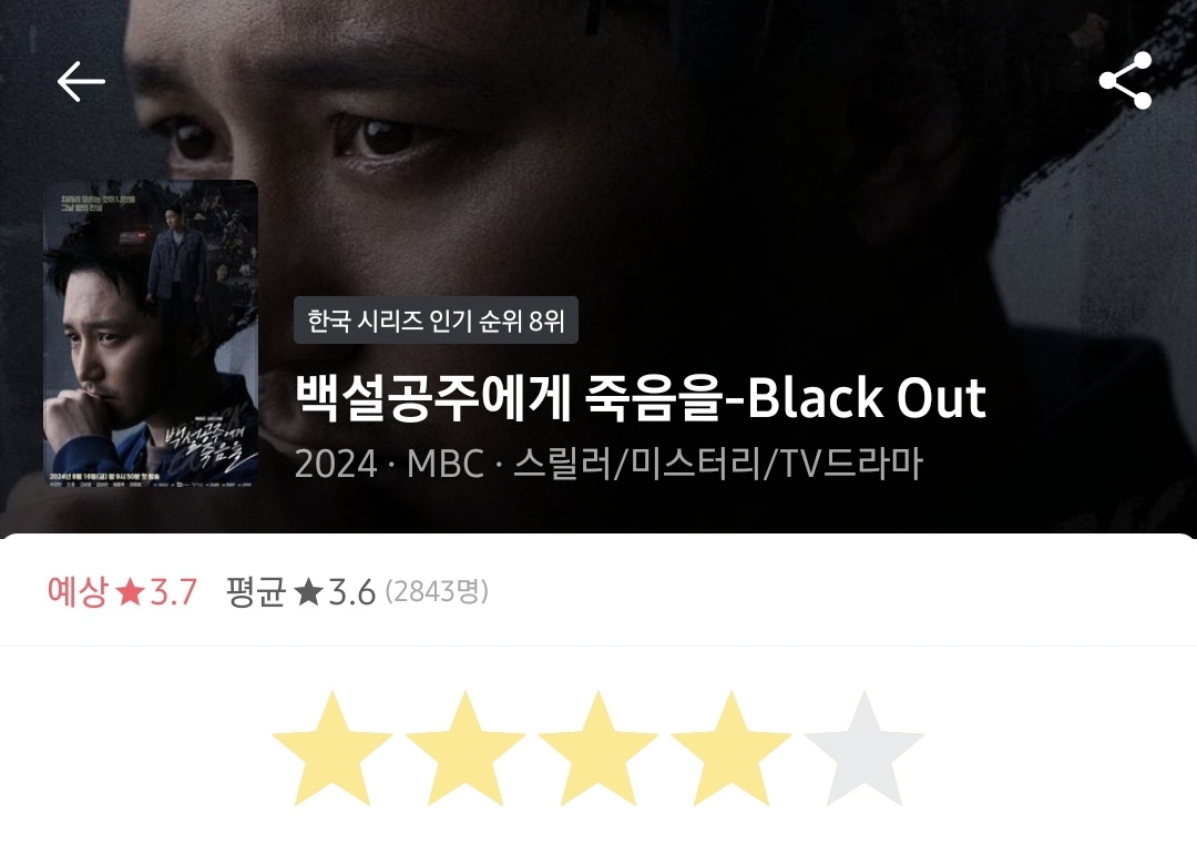 근데 묘하게 백설공주에게 죽음을보다 살짝 지루한 감이 있어서 별 하나 뺌