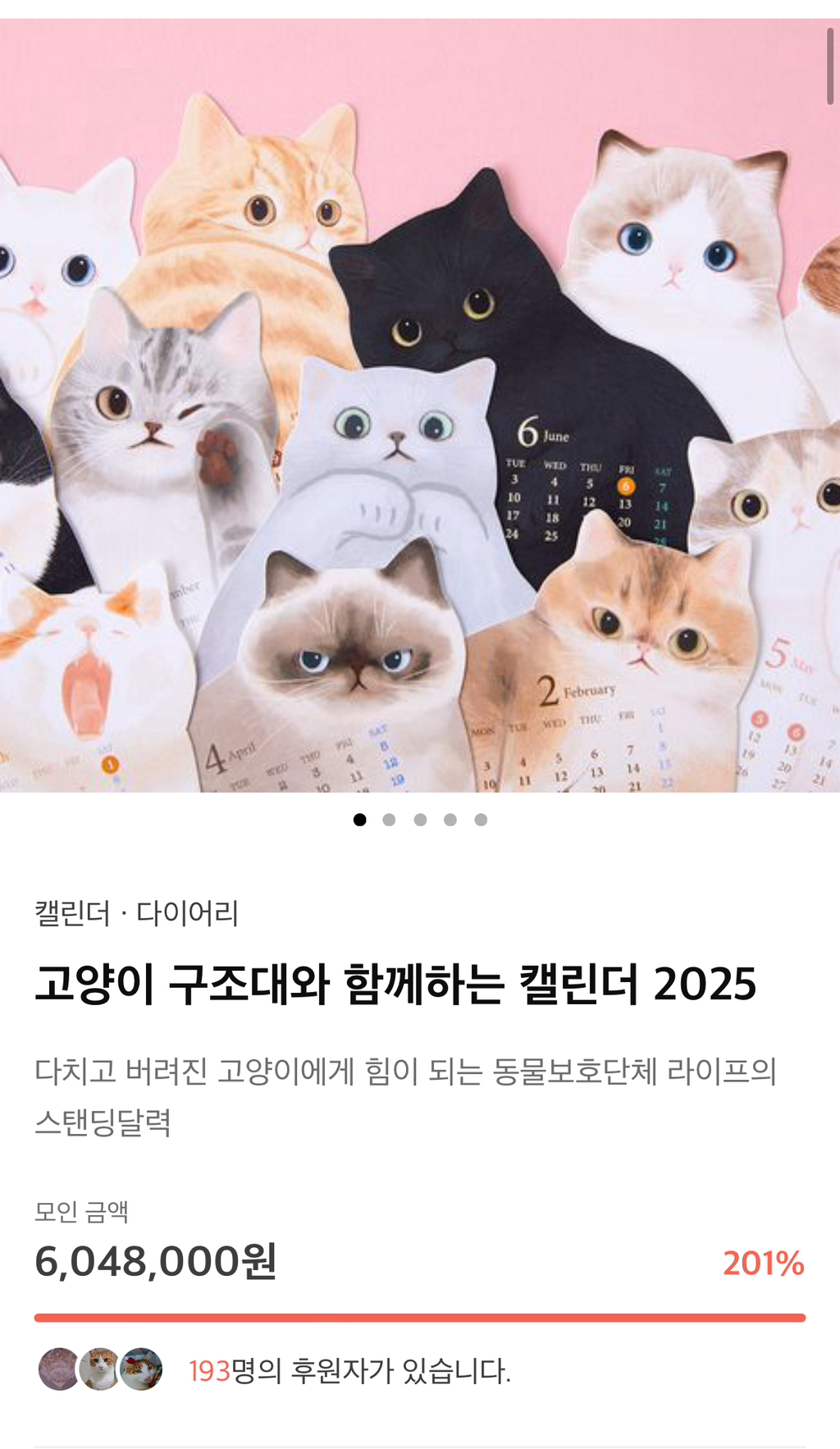 동물구조단체 라이프 캘린더인데