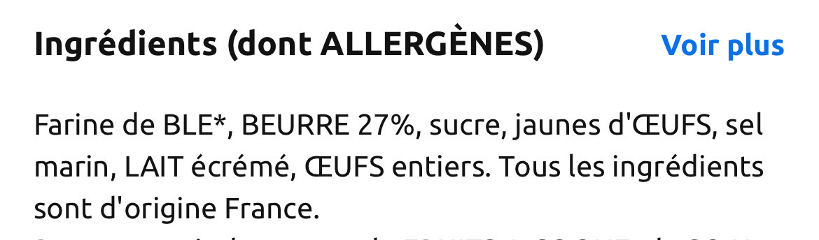 성분표를 봐. 밀가루, 버터, 설탕, 소금, 크림, 계란 이게 끝임. ㄹㅇ 아는 맛인데 무조건 맛있어 ㅋㅋ 솔직히 한국에서 마가린이랑 섞어서 하는 버터쿠키종류보다 훨 맛있어. 고소하고 풍미가 좋음~ 가격도 1유로대였나 그랬음. 프랑스에 이런 쿠키 많은데 패키지가 괜히 프랑스느낌 낭낭해서 회사에 돌릴 가성비 선물용으로 추천.