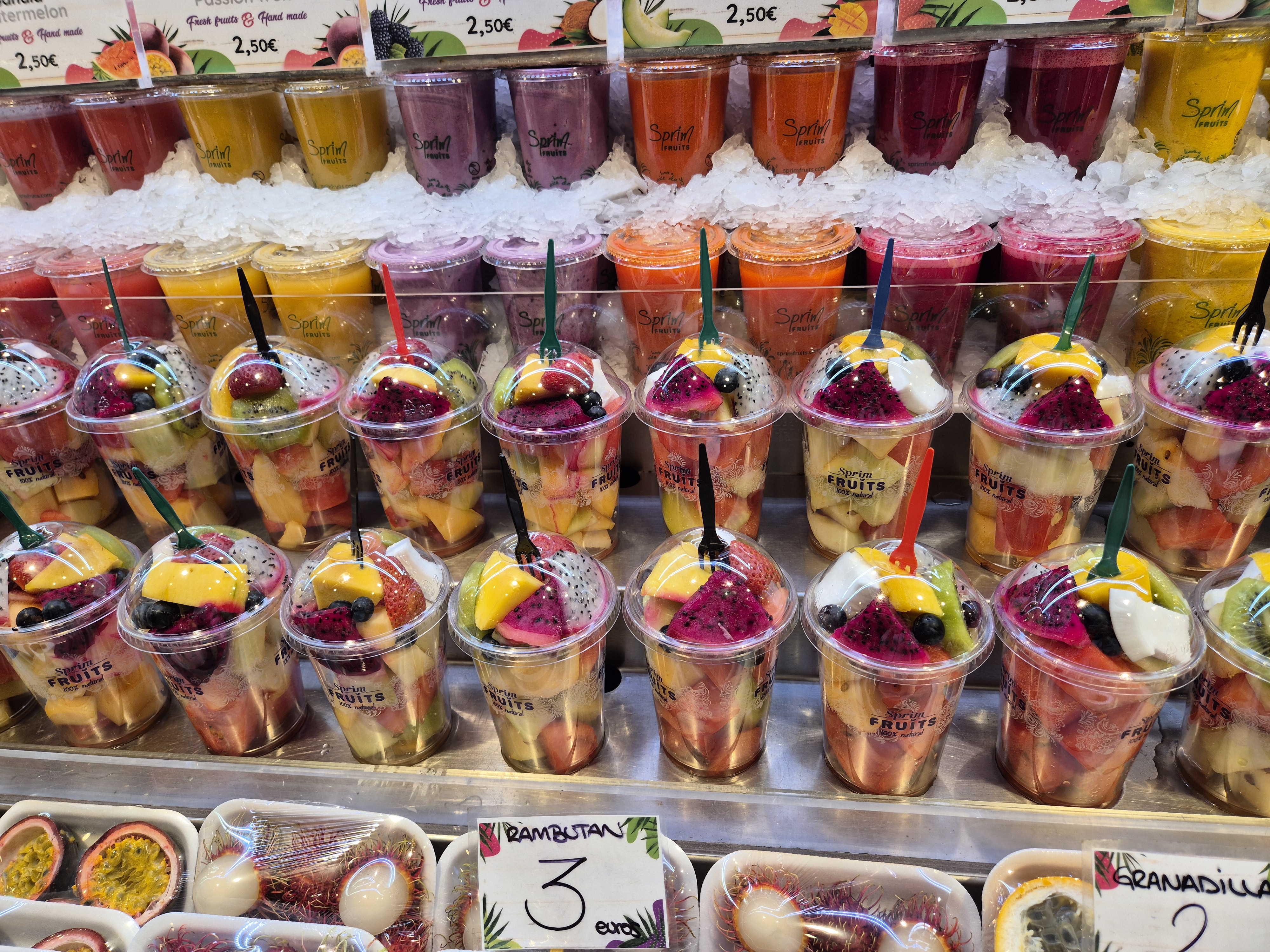컵과일이랑 과일주스도 있음. 시장 초입에는 4유로 정도 하는데 안으로 들어갈 수록 조금씩 저렴해져