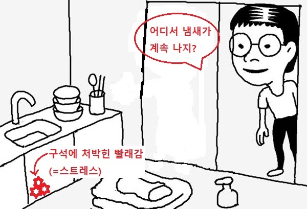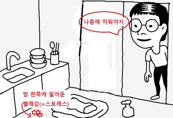스트레스로 인한 감정(=빨래감)이나, 스트레스가 되는 일을 잠시 잊도록 노력하는 것.