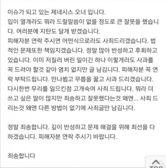 이후 문제가 커지자, 인터넷에 반성문을 올리며 자신의 행동에 후회를 했죠.