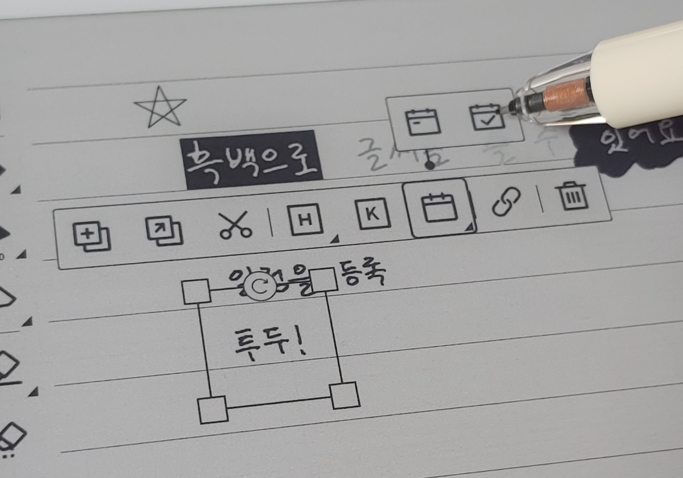 내가 지금 라인 템플릿을 설정해놔서 그런데 여기에 펜으로 쓰는거기때문에 필기든 스케치든 다 가능해