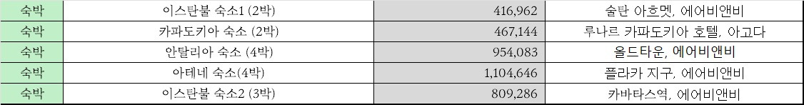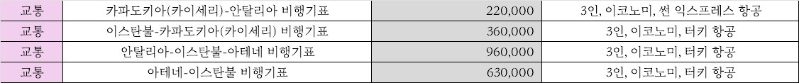 한국-이스탄불 왕복 비행기표 제외