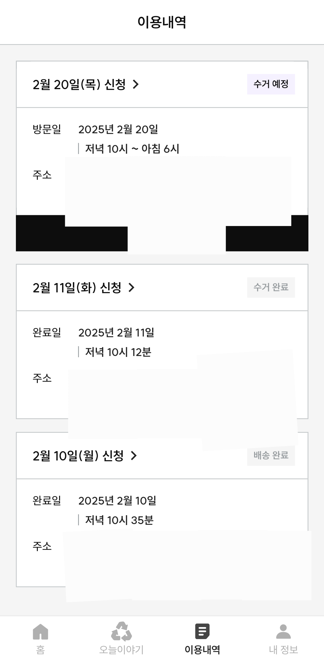 그리고 문 앞에 내버려 두고 어플로 수거신청을 하면 끝!
