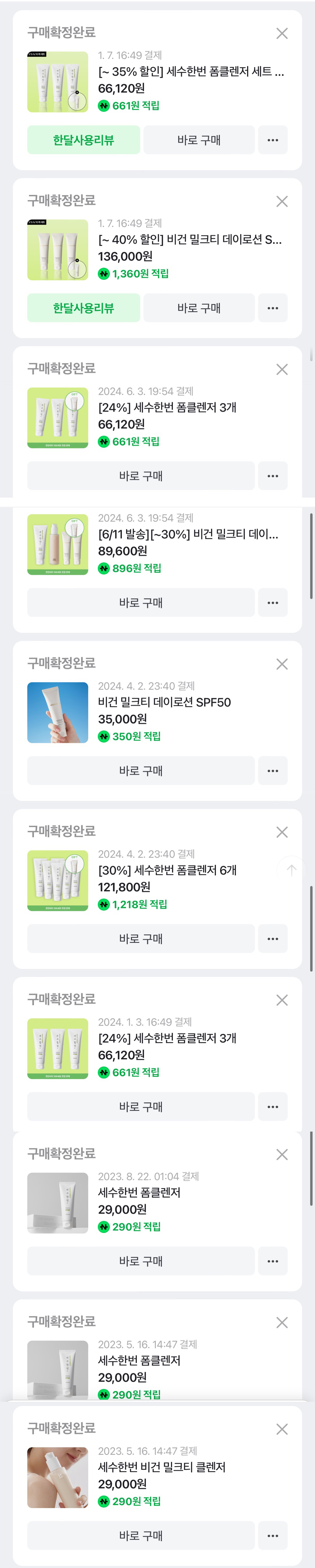아래는 구매 내역 인증 (직구 제품은 해외 갈 때 쟁이는 편이라 구매 내역이 없음 ㅠ)
