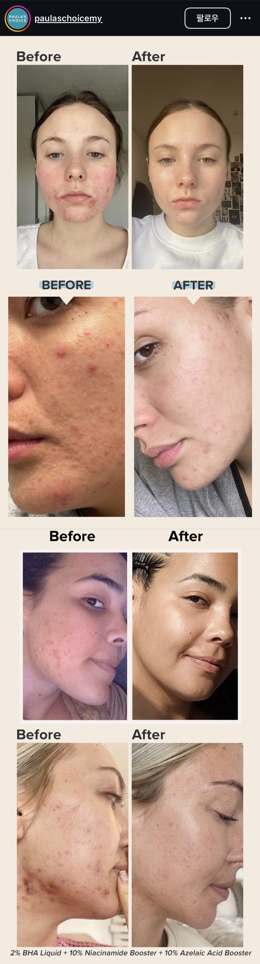 면포성 여드름이 나는 이유는 피지가 모공 밖으로 나오지 못 하고 피부 밑에서 쌓이기 때문인데 아하가 피부의 죽은 각질을 녹여내고 바하가 모공에 쌓인 피지를 녹여주는 역할을 함. 얼굴 개 예민 혹은 주사피부 아닌 이상 무조건 데일리로 사용하는 걸 추천함.