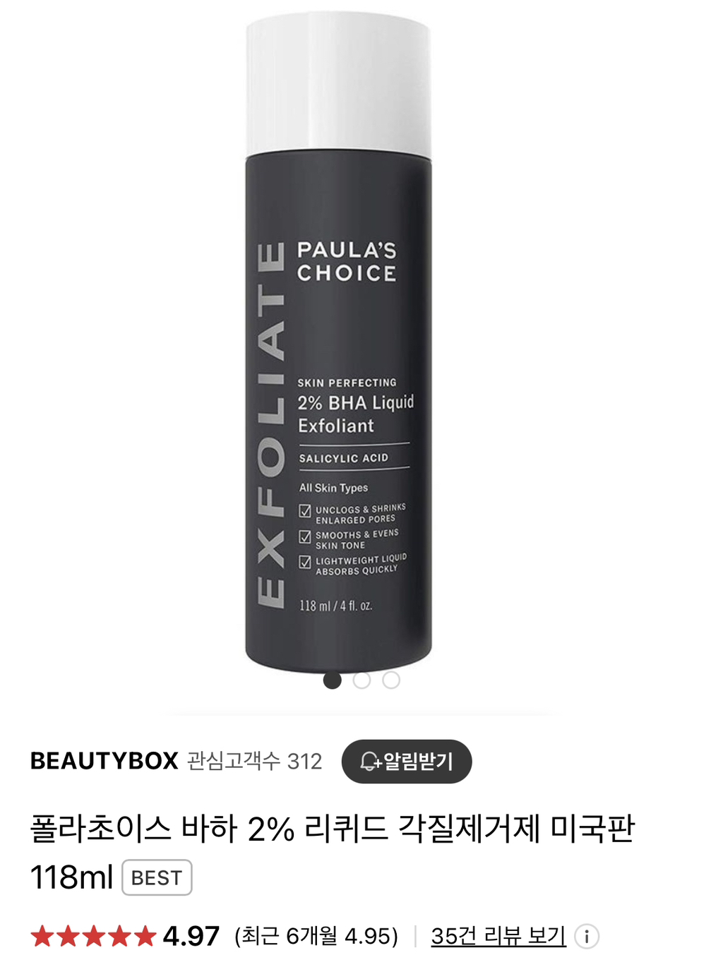 내가 써본 바하 토너 중 성분 함량 높으면서 피부자극 걱정 없이 사용 가능했던 건 폴라초이스밖에 없었음,, 인터넷에 다른 후기들 찾아봐 간증글 넘쳐남.