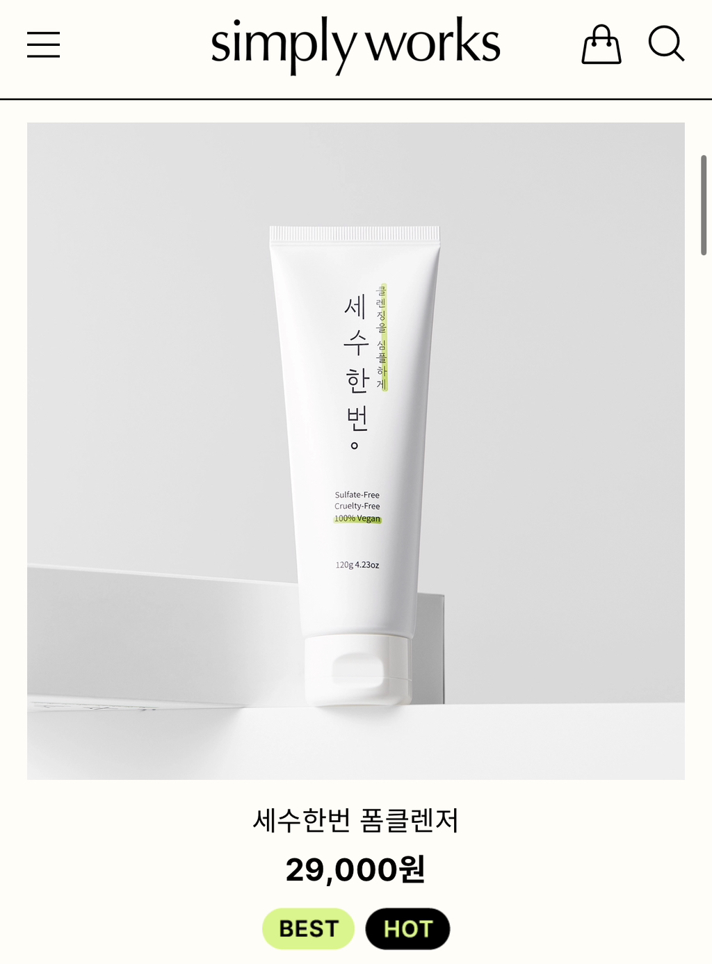 심플리웍스 세수한번 폼클렌저 | 저녁세안