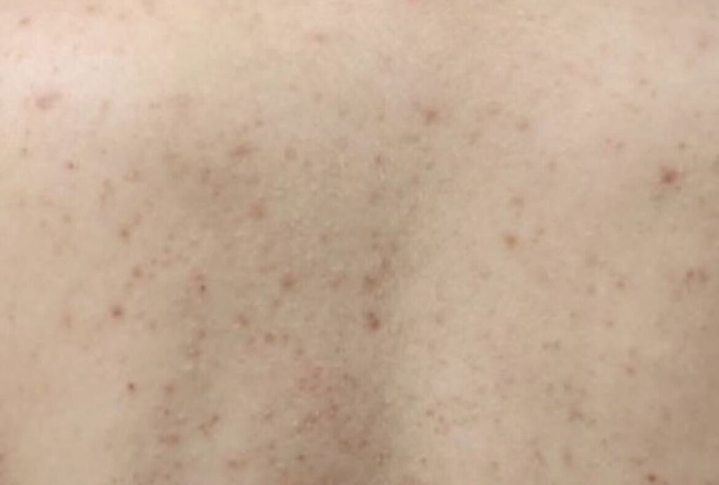 > 그냥 몸에 나는 여드름임. 피지 때문도 있고 건조해서 날 수도 있음.