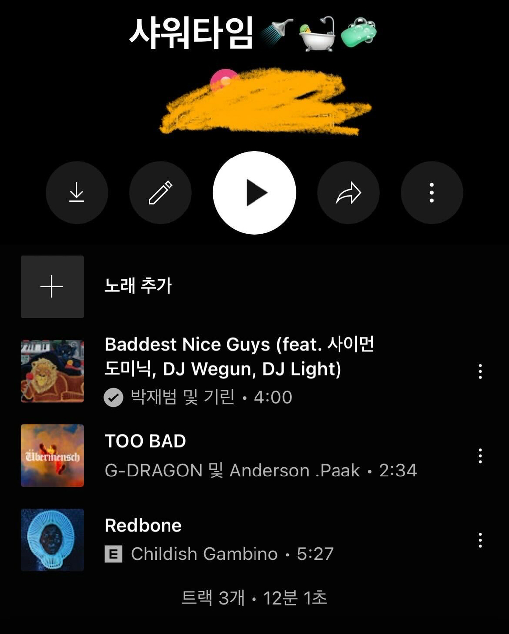 다들 샤워를 한 시간씩 하는지 플레이리스트가 1시간밖에 없어서 타이머겸 10분짜리 내가 하나 만들어서 그 안에 샤워함