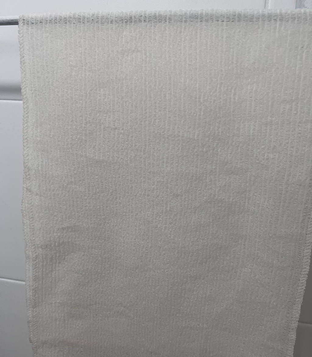 그래서 엠보싱 있는 곳으로 등 쓱쓱 닦아주고 앞면으로는 가슴쪽 닦고 귀 뒤까지 쓱 닦아줘