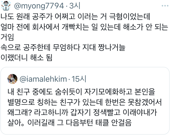 [짤털]직장인의 마음가짐 작성자피누피누|작성시간25.03.22|조회수28,393 목록 댓글 38 글자크기 작게가 글자크기 크게가 출처 : 여성시대 (본인 닉네임) https://cafe.daum.net/subdued20club/LxCT/332310너는 천재다반드시 꿈은 이뤄져 다음검색 현재 게시글 추가 기능 열기 북마크 공유하기 신고 센터로 신고 댓글 댓글 38 댓글쓰기 답글쓰기 댓글 리스트 작성자New!ME | 작성시간 25.04.01 고마워 작성자행복원해요 | 작성시간 25.04.01 귀여워ㅠㅠ 작성자타르르르 | 작성시간 25.04.01 넘귀여버 다내맘같아.., 또르르ㅋㅋㅋㅋㅋ 작성자우은차 | 작성시간 25.04.04 아 너무 귀엽고 주옥같닼ㅋㅋㅋ 작성자느낌굿 | 작성시간 25.04.06 유쾌하고 귀엽다 ㅋㅋㅋㅋ자주볼래 고마워 댓글 전체보기