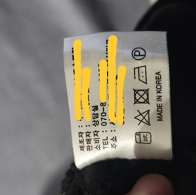 2) 그 뒤에 삼각형은 보통 표백 관련 기호인데 X가 있으니 표백 하지 말라는 뜻.