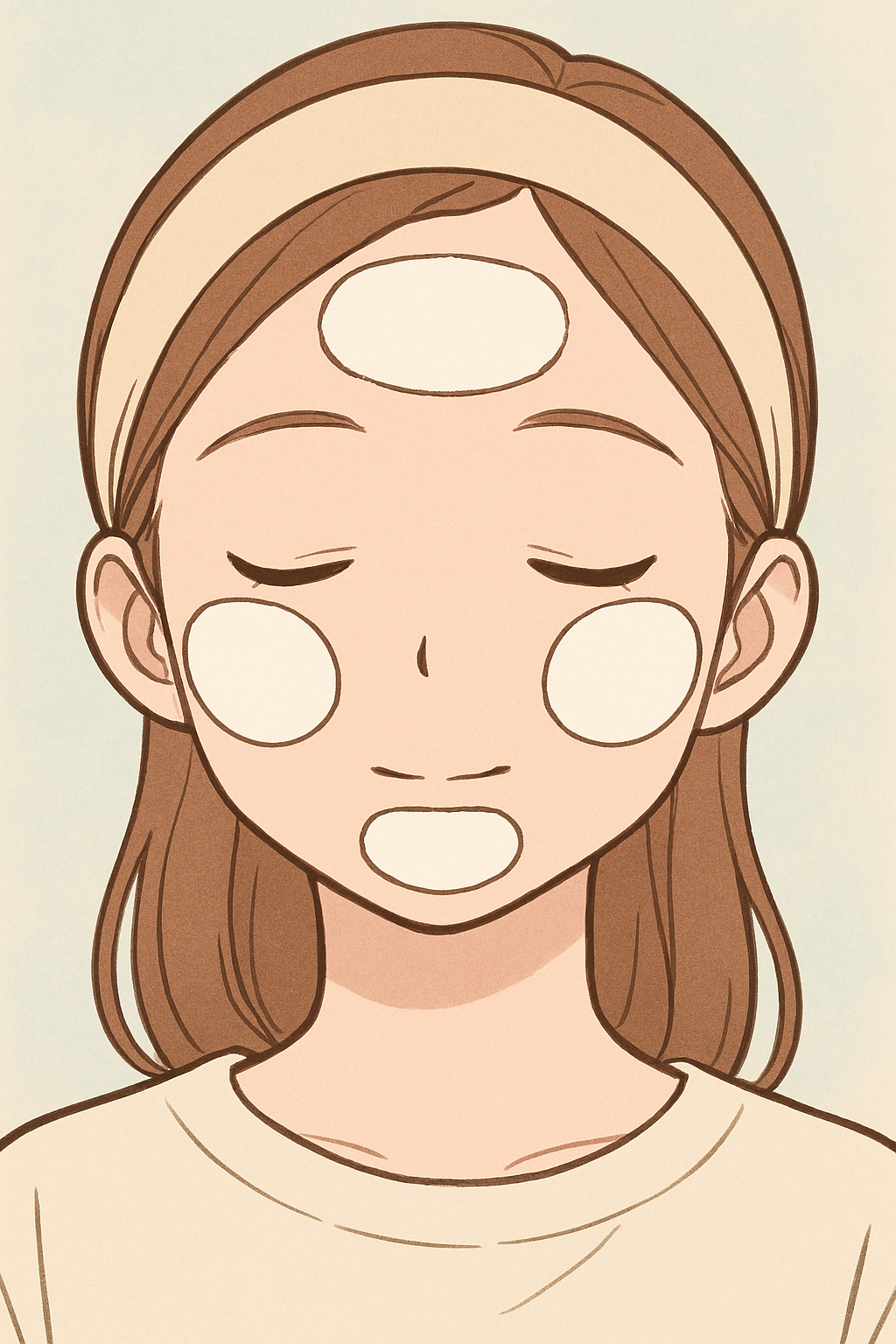 나머지 한장은 반 쪼개서 이마-턱에 붙인다