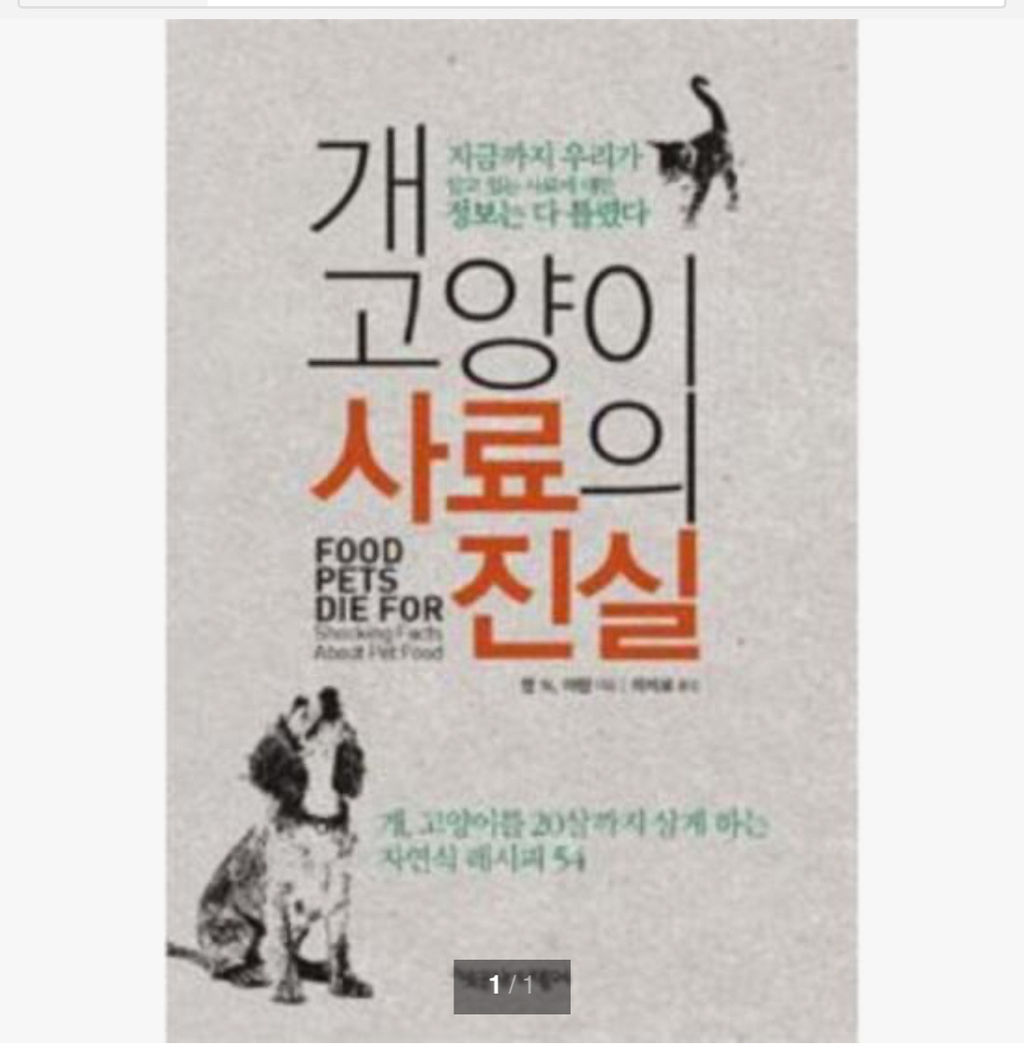 이 책은 내가 강아지 사료가 어떻게 만들어지는지, 어떤 재료를 쓰는지.. 이런거에 대해 경각심을 가지게 해준 책이야. 과거의 나처럼 아무 의심없이 사료를 그냥 좋다고하니까 구매하는 모든 사람에게 추천해.. 불편한 내용이지만 꼭 알아야하는 내용이라고 생각해.