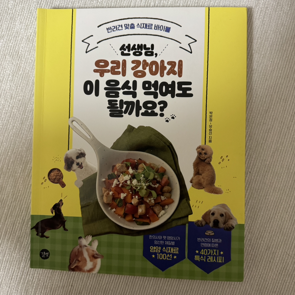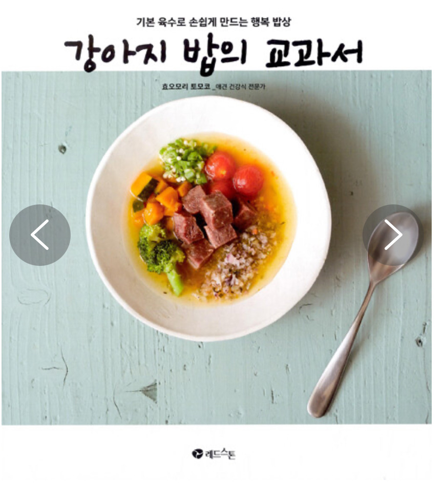 어떤 재료가 강아지에게 어떻게 좋은지 진짜 자세히 알 수 있어! 우리집 첫째의 피부가 나아지게 될 수 있는 계기가 되어준 책! 피부염이 있거나, 뭔가 안좋은 곳이 있다면 이 책에서 나온 재료들을 잘 읽어보고, 도움이 될 만한 재료들을 사용해서 레시피를 구성하는거 정말로 추천할게.