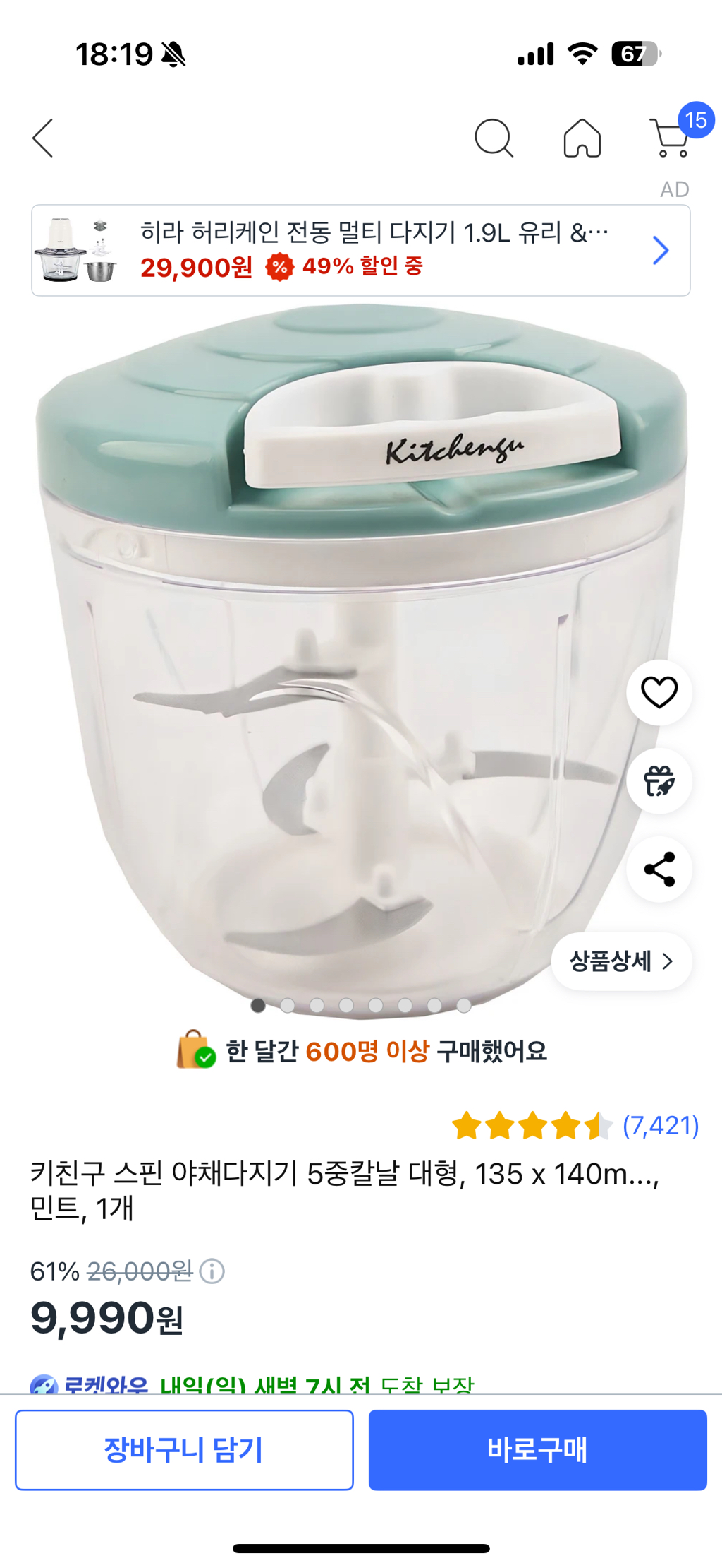 - 만능 다지기 (쿠팡 , 다이소에도 있음) / 동그랑땡 버전 : 이거 유리 통으로 된 전동 다지기도 써봣는데, 무겁고, 전동 날 부분에 야채가 다 들어가고 별로여서 결국 수동으로 쓰는중… 생각보다 안힘듬..!