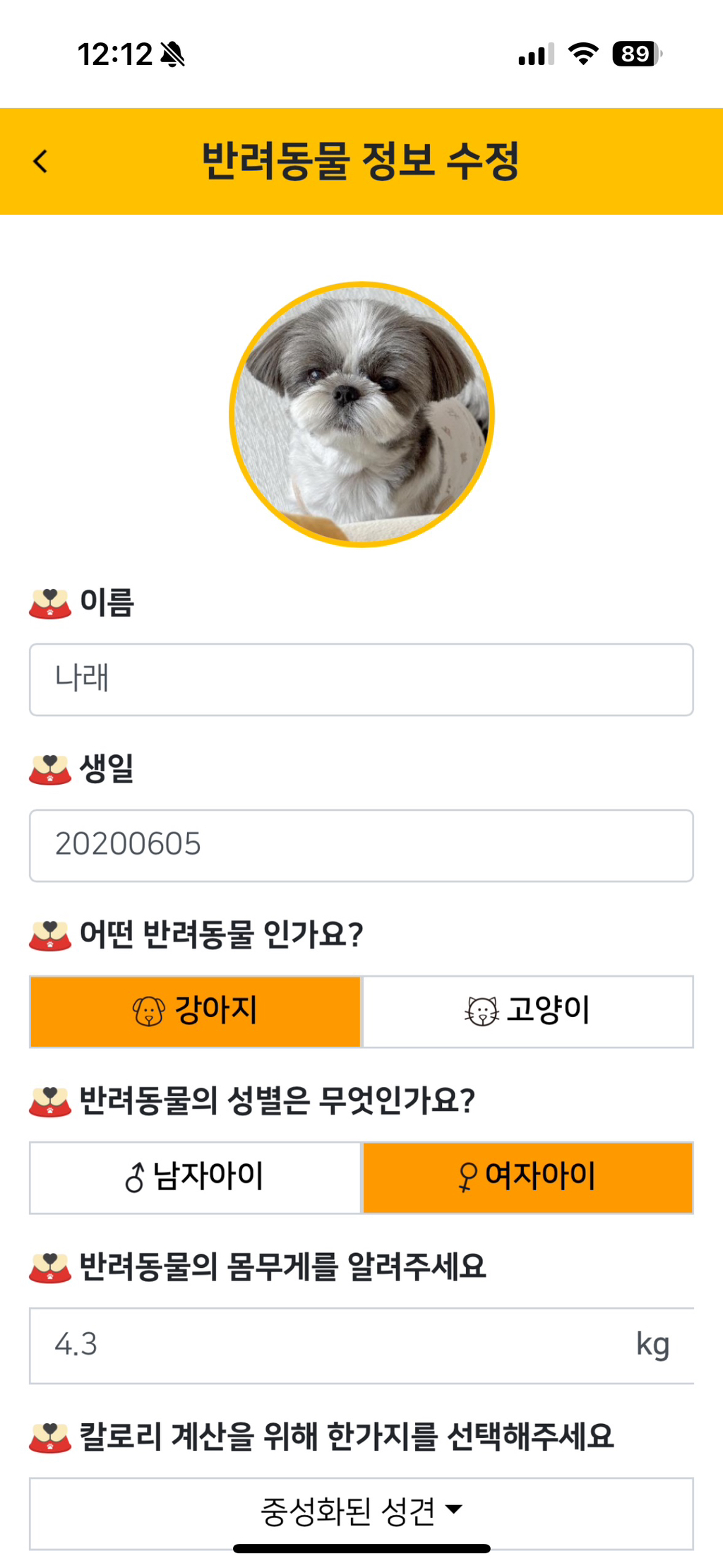 울집 댕이는 생일을 몰라서 추정 생일을 입력했어! 그리고 중성화 했는지 안했는지 여부도 선택해주면