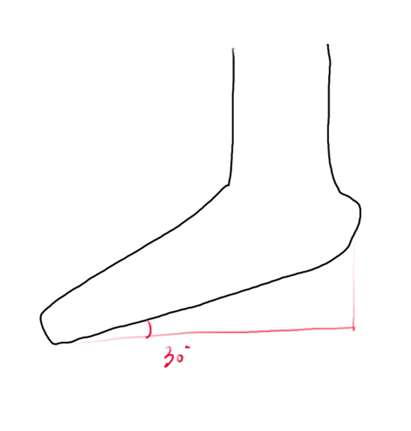 1. 굽의 경사가 30도를 넘지 않을 것 (앞쏠림 x)