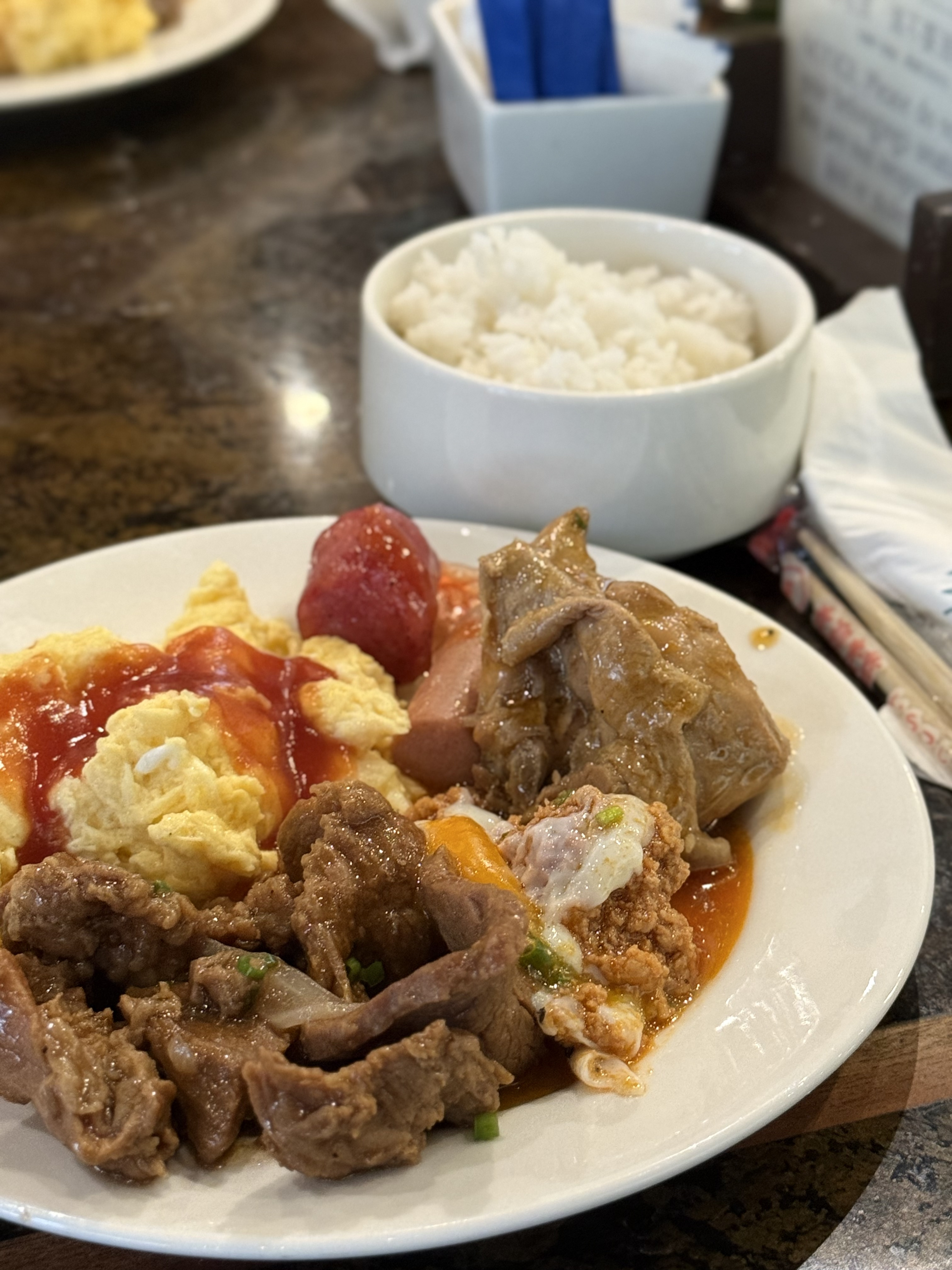아일랜드 치킨 이나살: paa(닭다리살), fried garlic rice 변경, 깡콩(apan-apan), pork bbq 추가