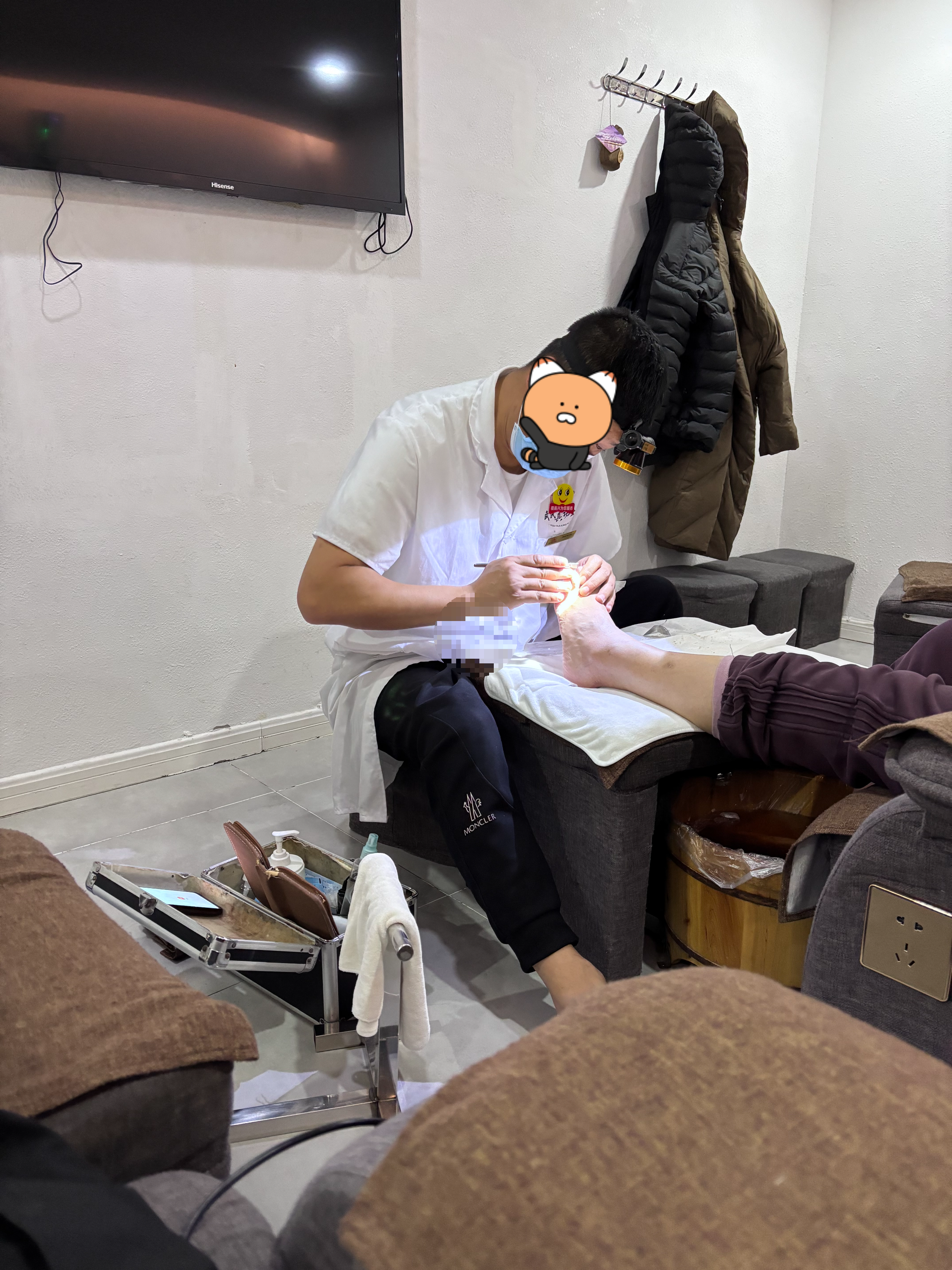 옆에선 어떤 중궈 아주머니가 발 각질 제거 하고 계셨어