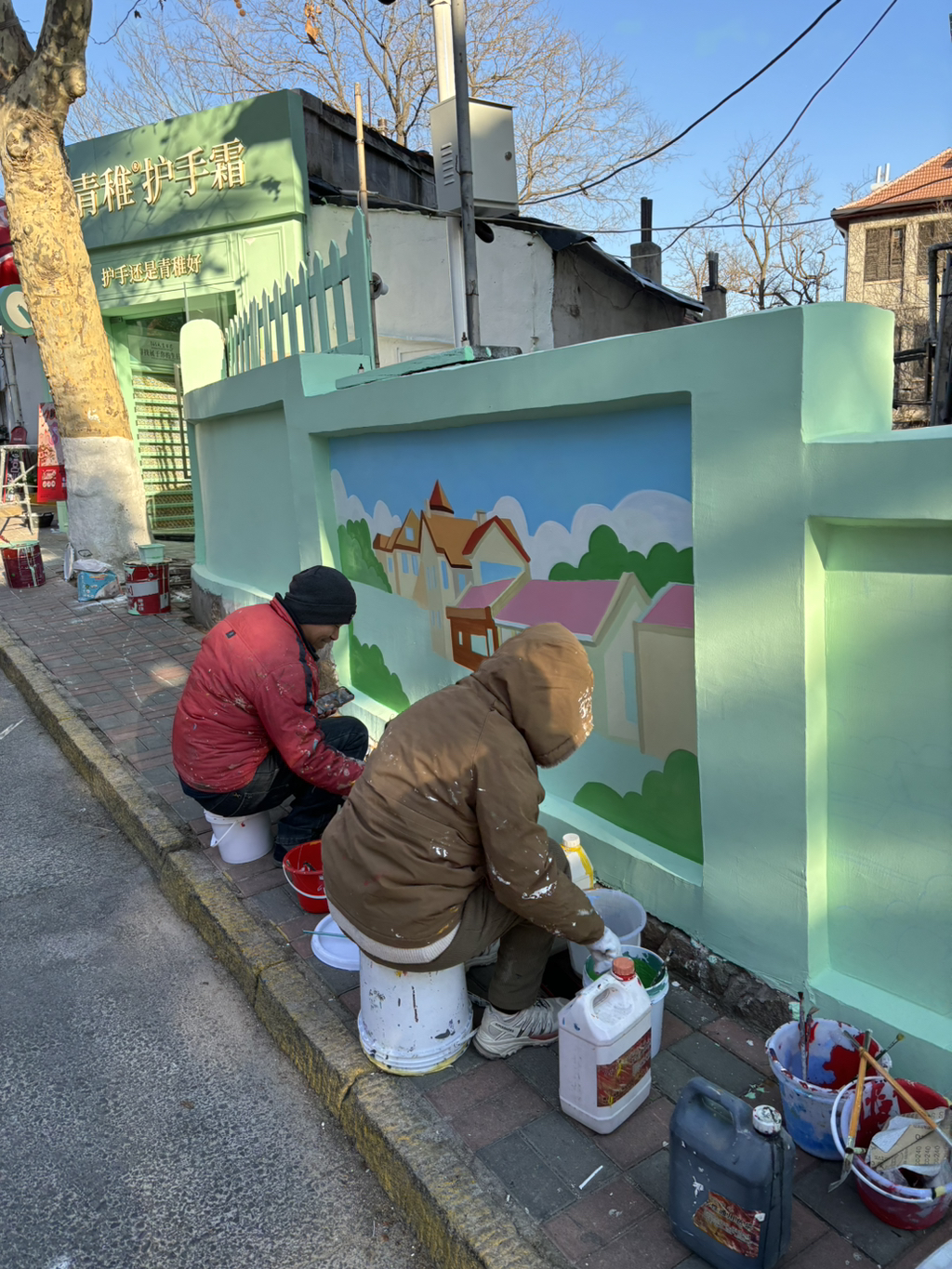 열심히 벽화 그리시는 분들